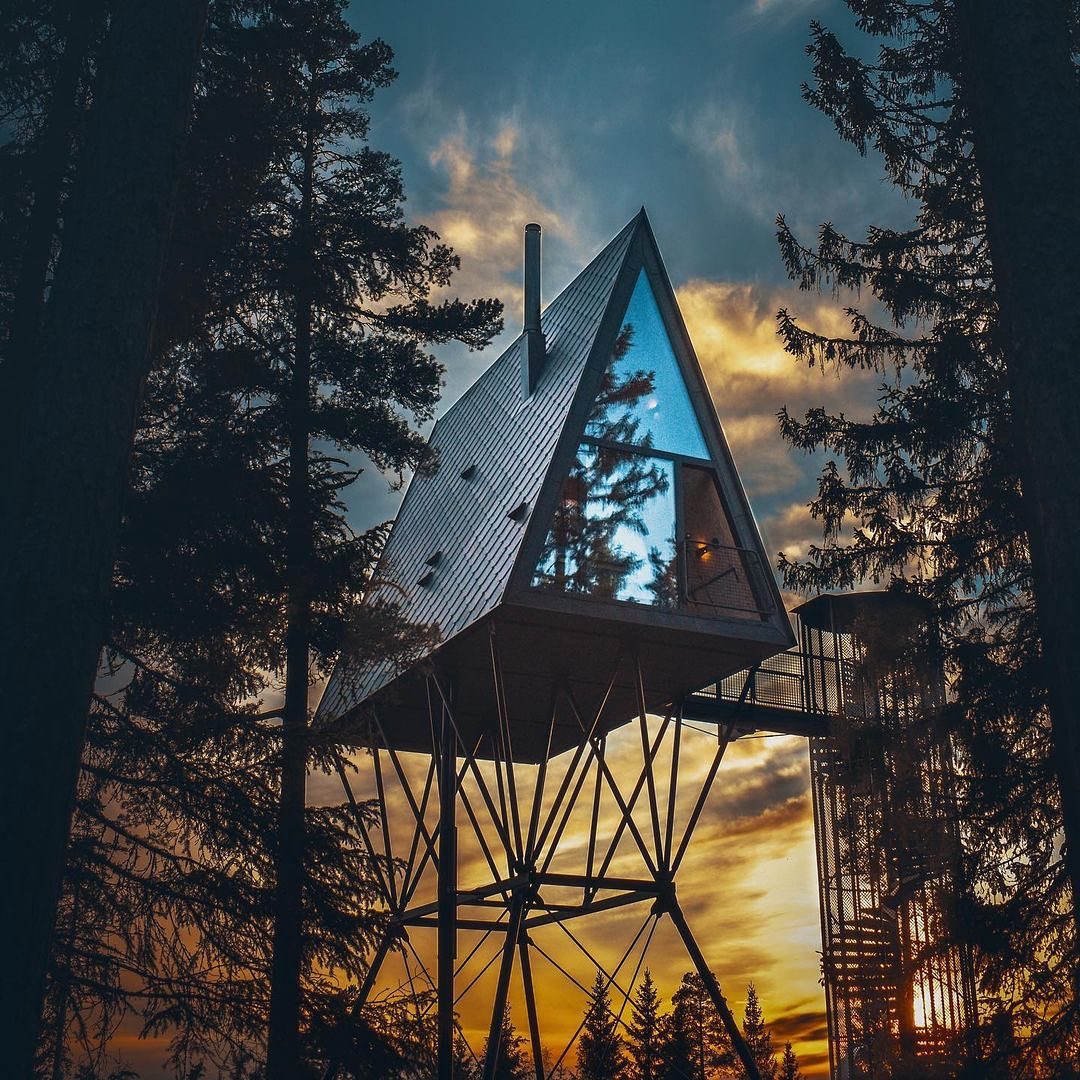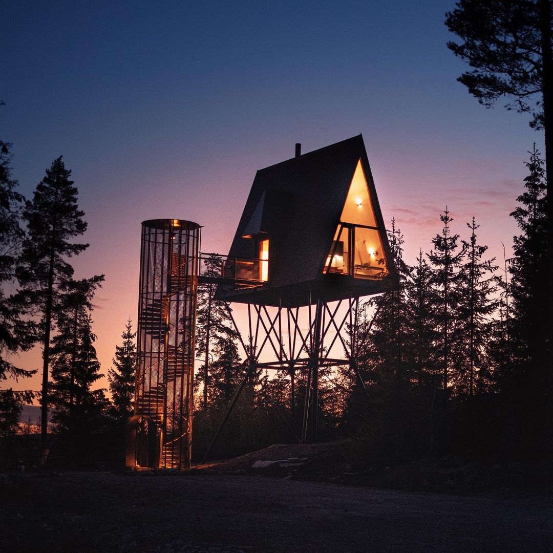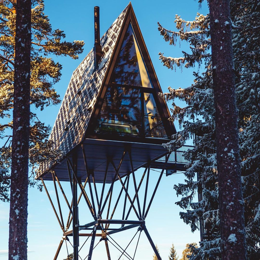 A cabana A Frame 8 metros acima do chão que hospeda até seis pessoas na floresta com ursos, lobos, alces e muita vida selvagem