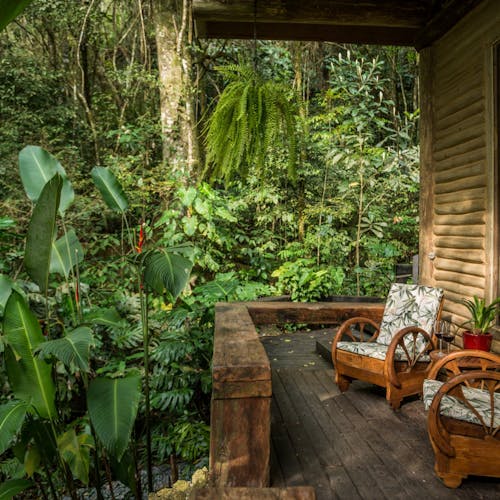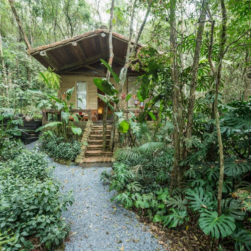 Trouxemos a suíte 12 por ser uma casinha com pegada de cabana em um local privilegiado da pousada, com privacidade e perfeita pra quem ama natureza.