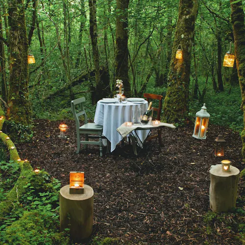 - jantar em mesa reservada e exclusiva no meio da floresta