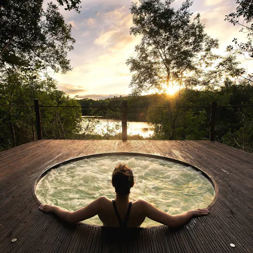 - jacuzzi em deck com vista para o rio