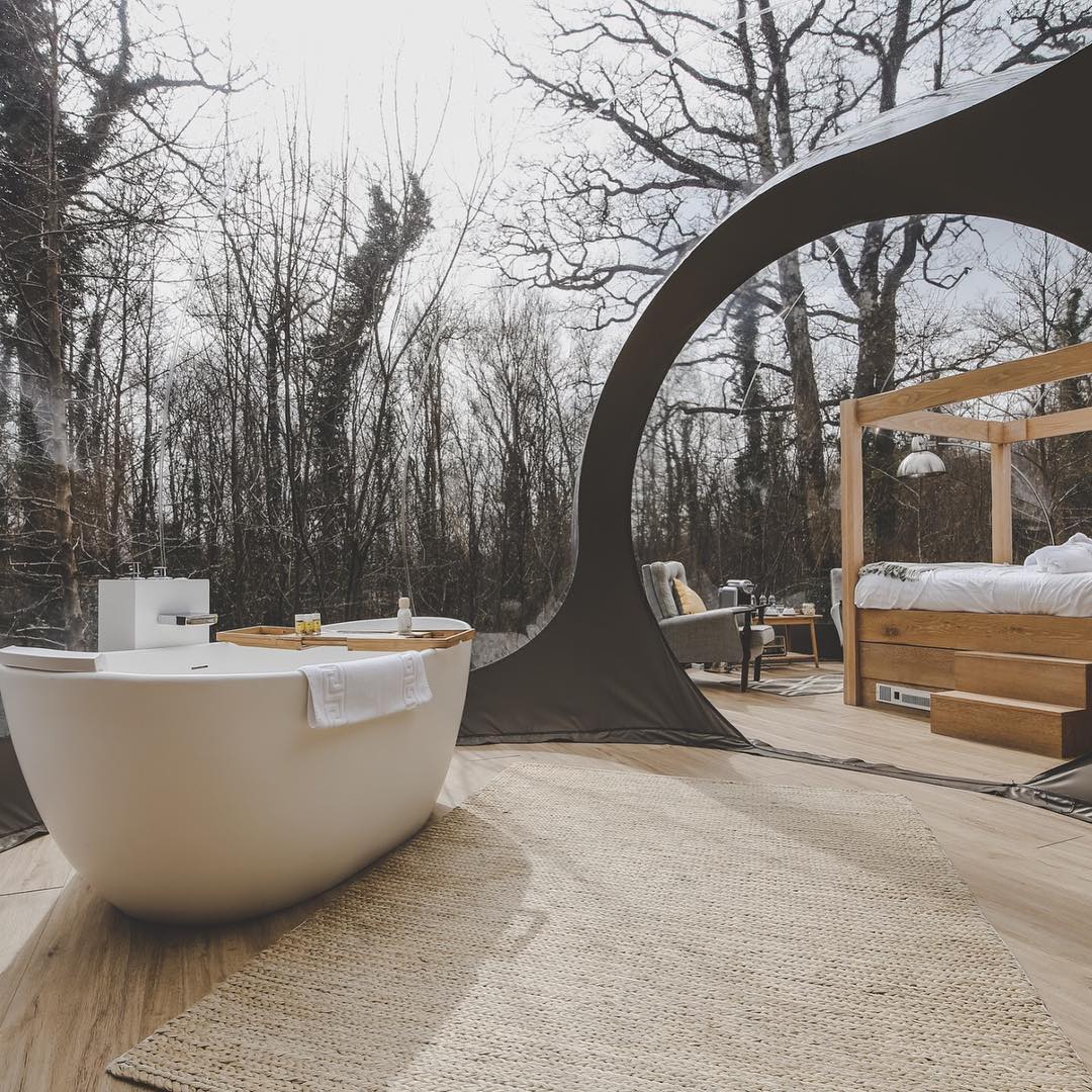 As bolhas premium oferecem interiores mais espaçosos e extra luxuosos, incluindo uma banheira vitoriana com vista para a floresta.