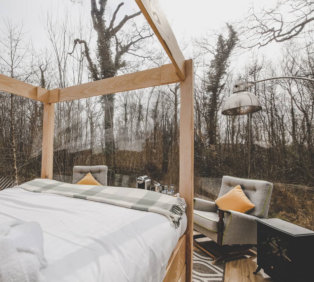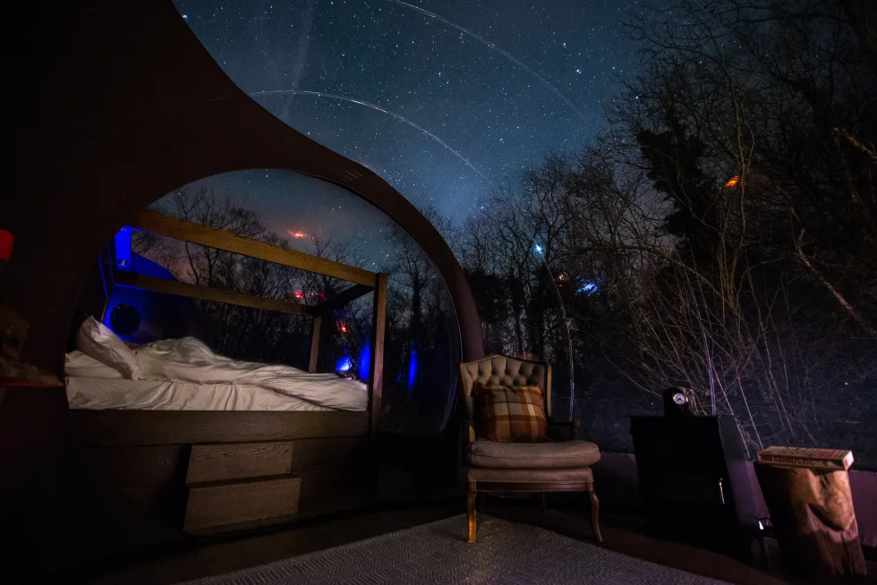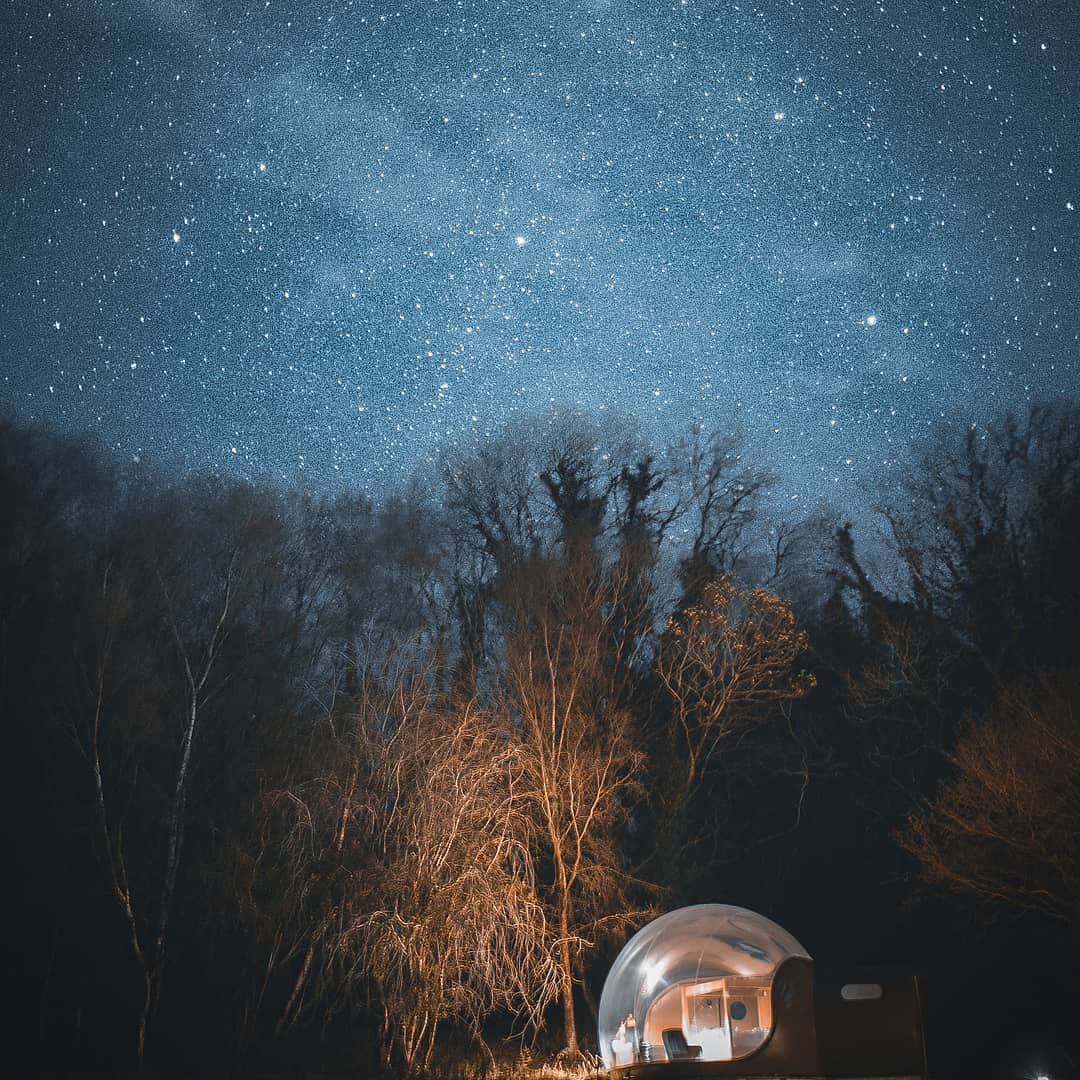 Com duas opções de cabanas bolha, o hotel Finn Lough no Reino Unido, propõe uma experiência exclusiva sob as estrelas.