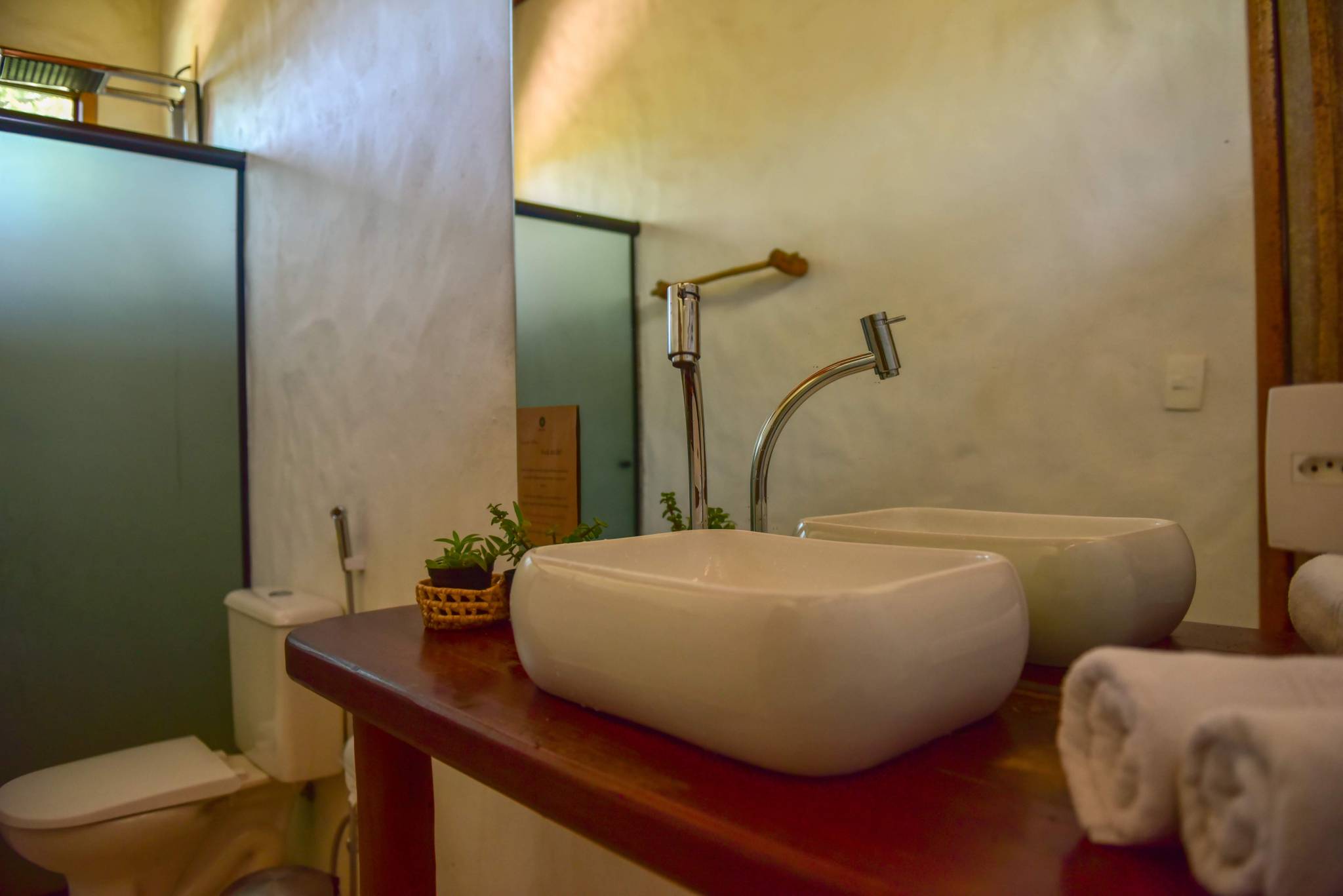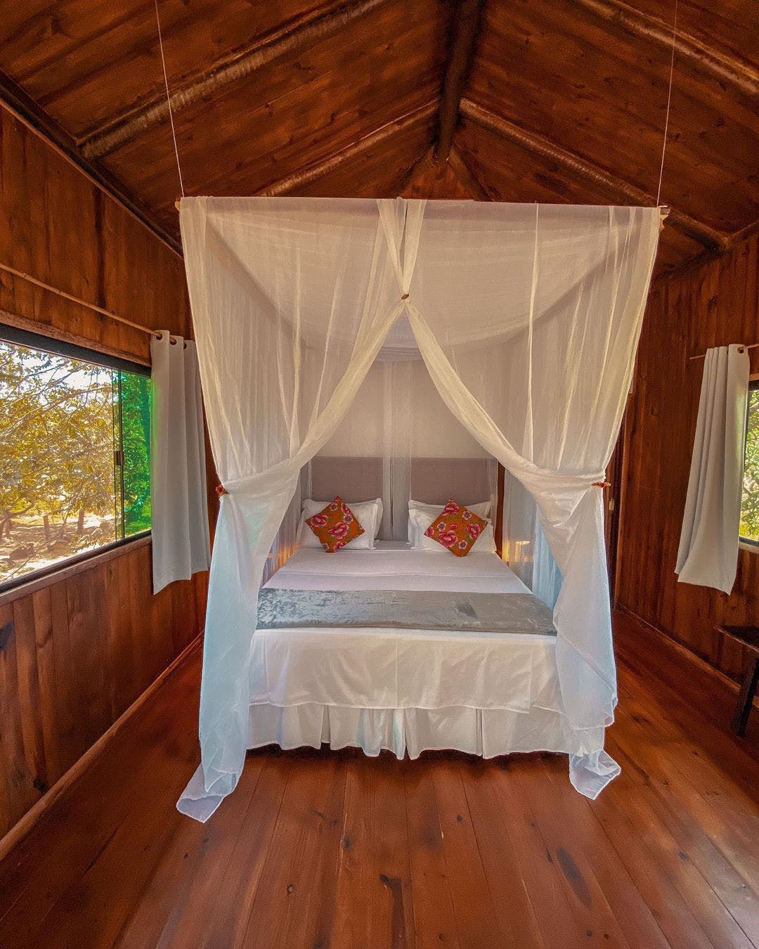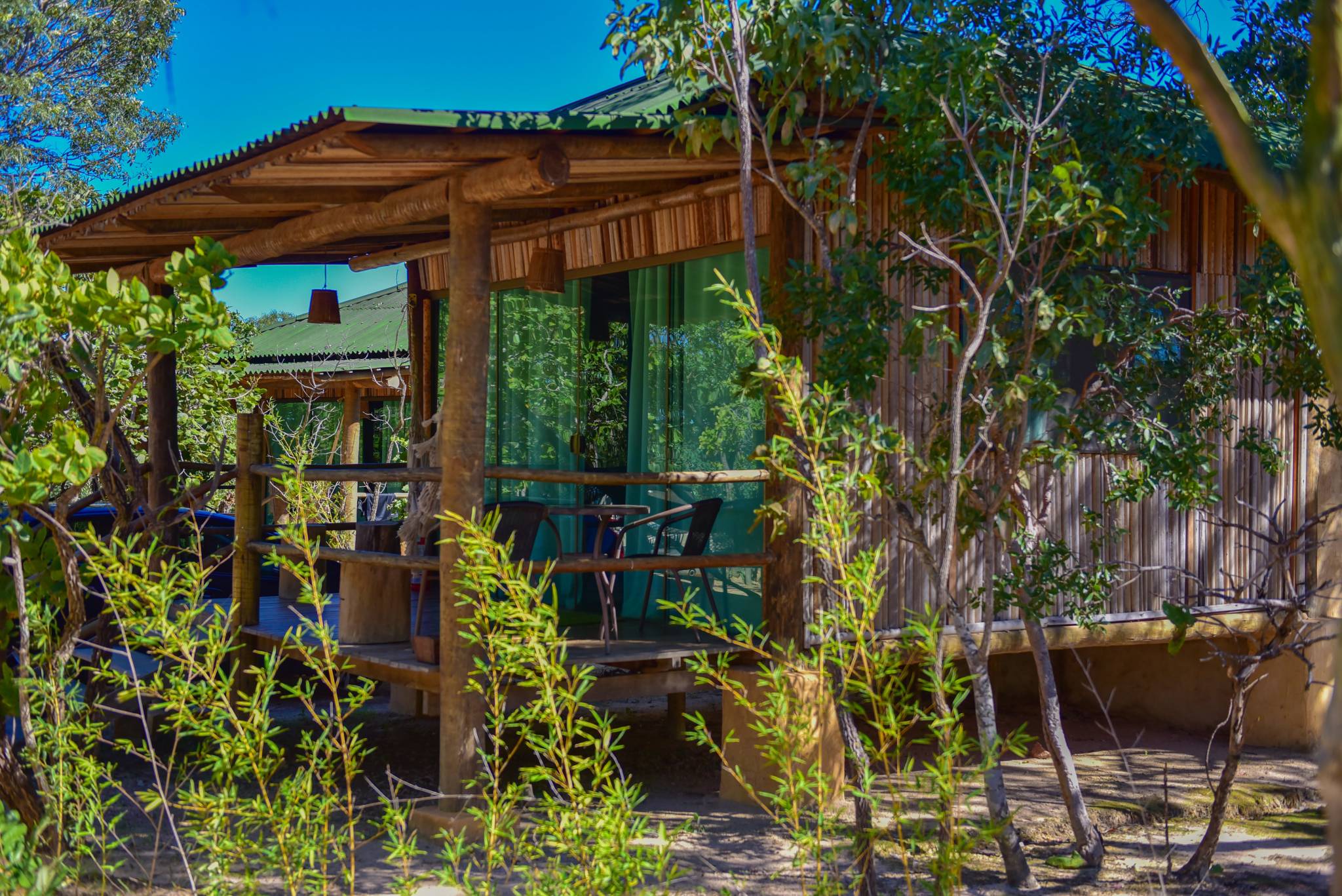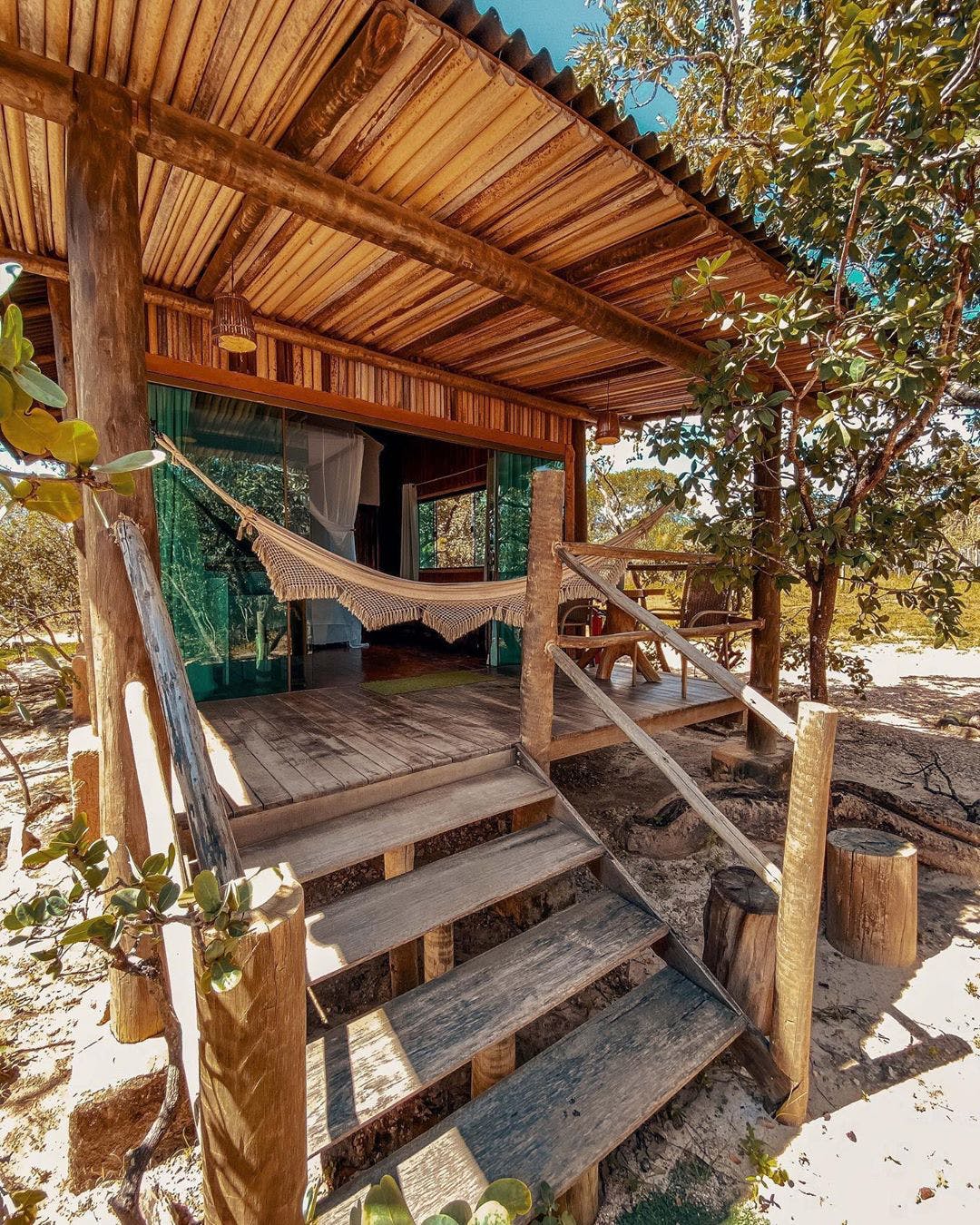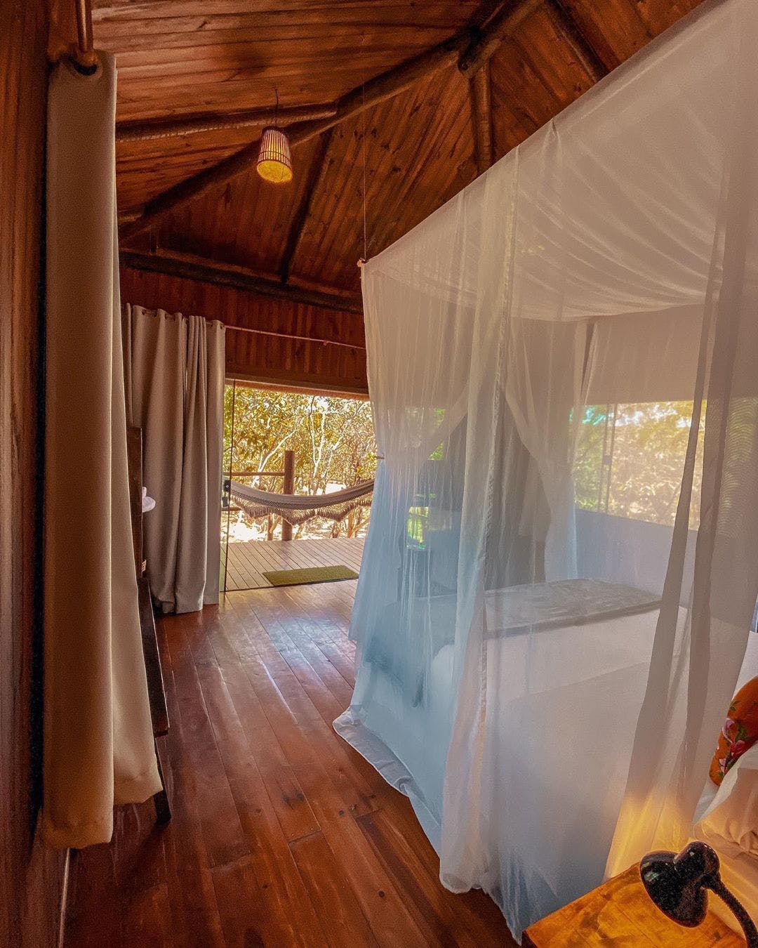 A Cabana Zazu e outras 2 são mais afastadas do centro da pousada (que tem apenas 7 bangalôs além das cabanas), dispostas em um terreno de cerrado nativo, deixando a experiência ainda mais interessante pela vegetação selvagem.