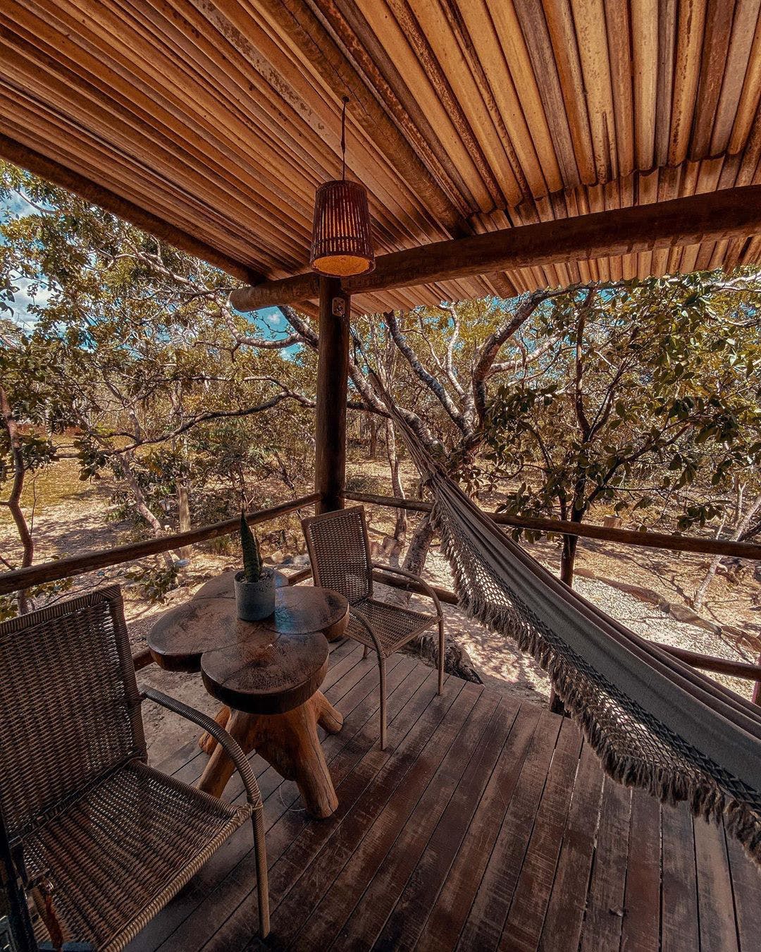 No portal de entrada do Parque Nacional da Chapada dos Veadeiros se encontra essa cabana. Ela é uma das opções de hospedagem da pousada Baguá.