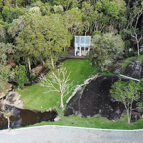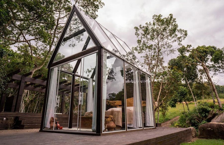 Uma cabana toda de vidro ao lado de um lago: Espaço Cambirela é um refúgio diferente na montanha e a nova hospedagem de Santa Catarina