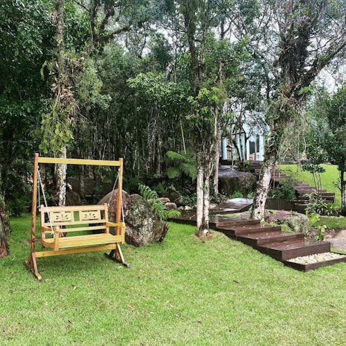 A cabana chamada de Naturaleza foi idealizada para quem quer viver uma experiência de reconexão sozinho ou acompanhado, em um lugar tranquilo. Além da cabana, outros detalhes foram pensados para ter história e não ser apenas mais um item no espaço, é o caso dos balanços de madeira que ficam pelo terreno, as madeiras utilizadas para a construção, possuem mais de 100 anos e eram antigos postes de luz.