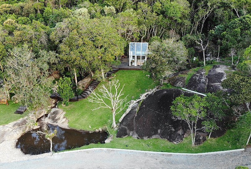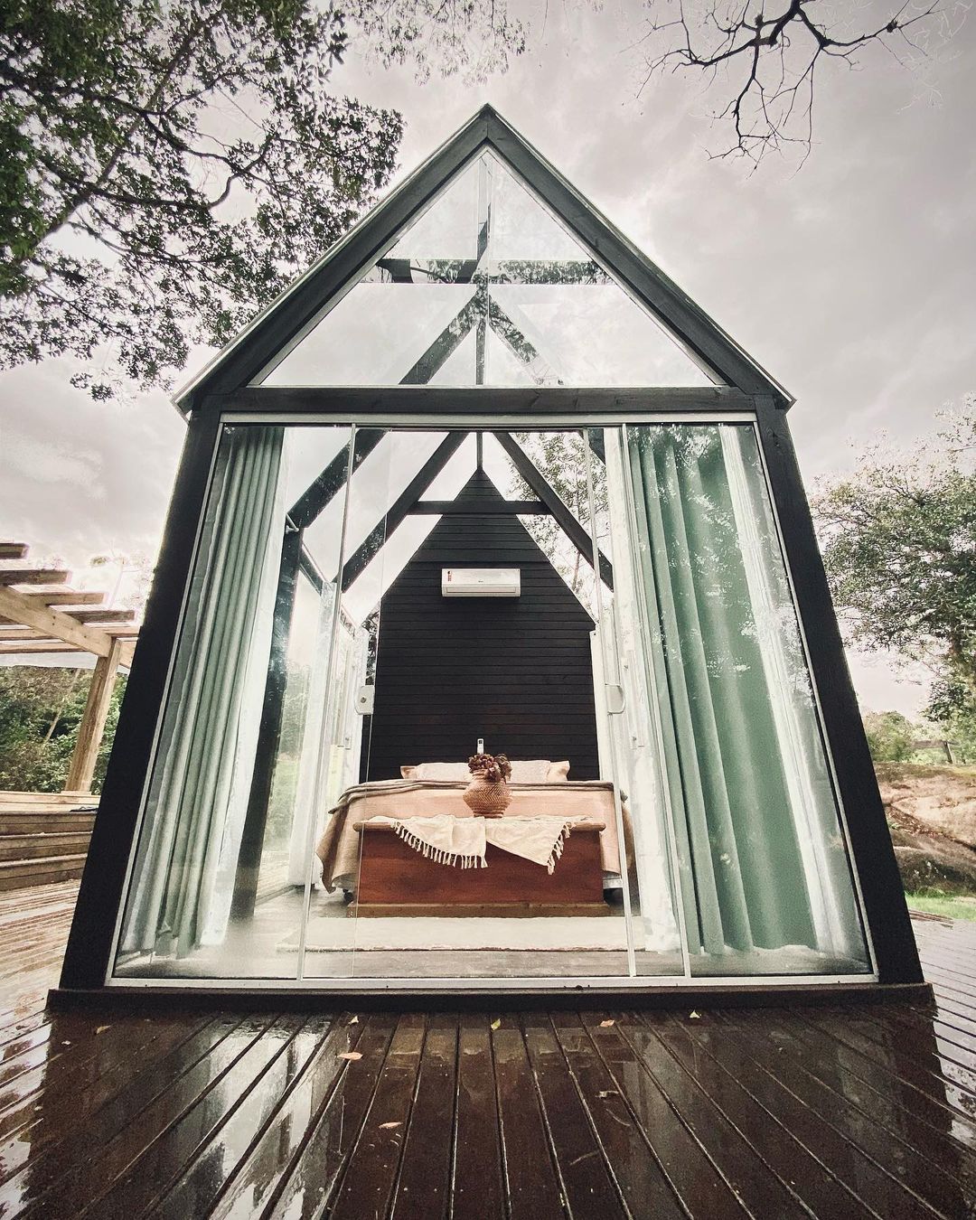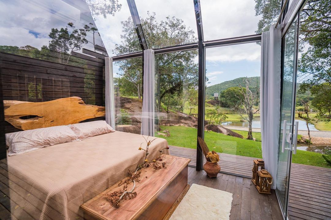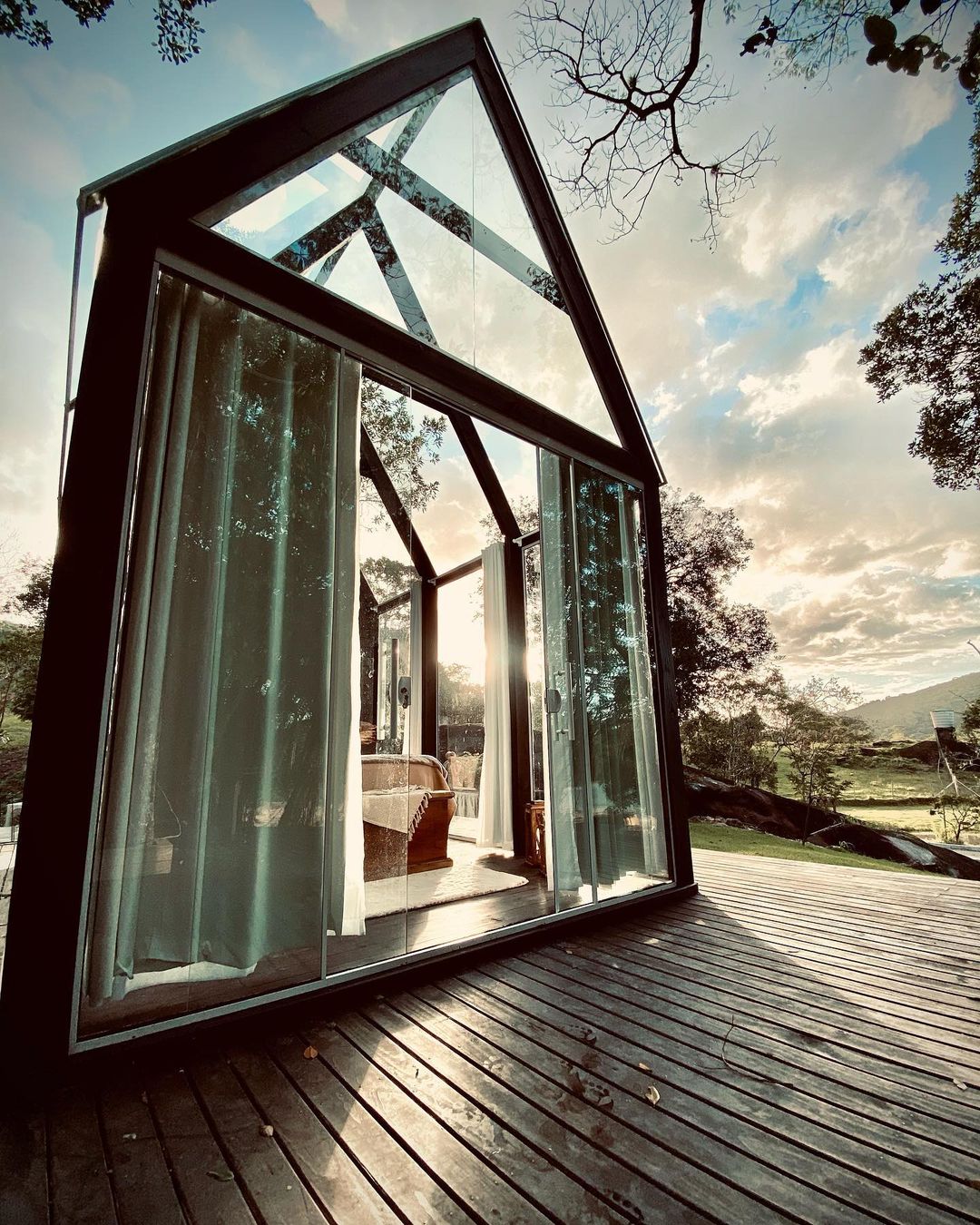 Uma cabana toda de vidro ao lado de um lago: Espaço Cambirela é um refúgio diferente na montanha e a nova hospedagem de Santa Catarina