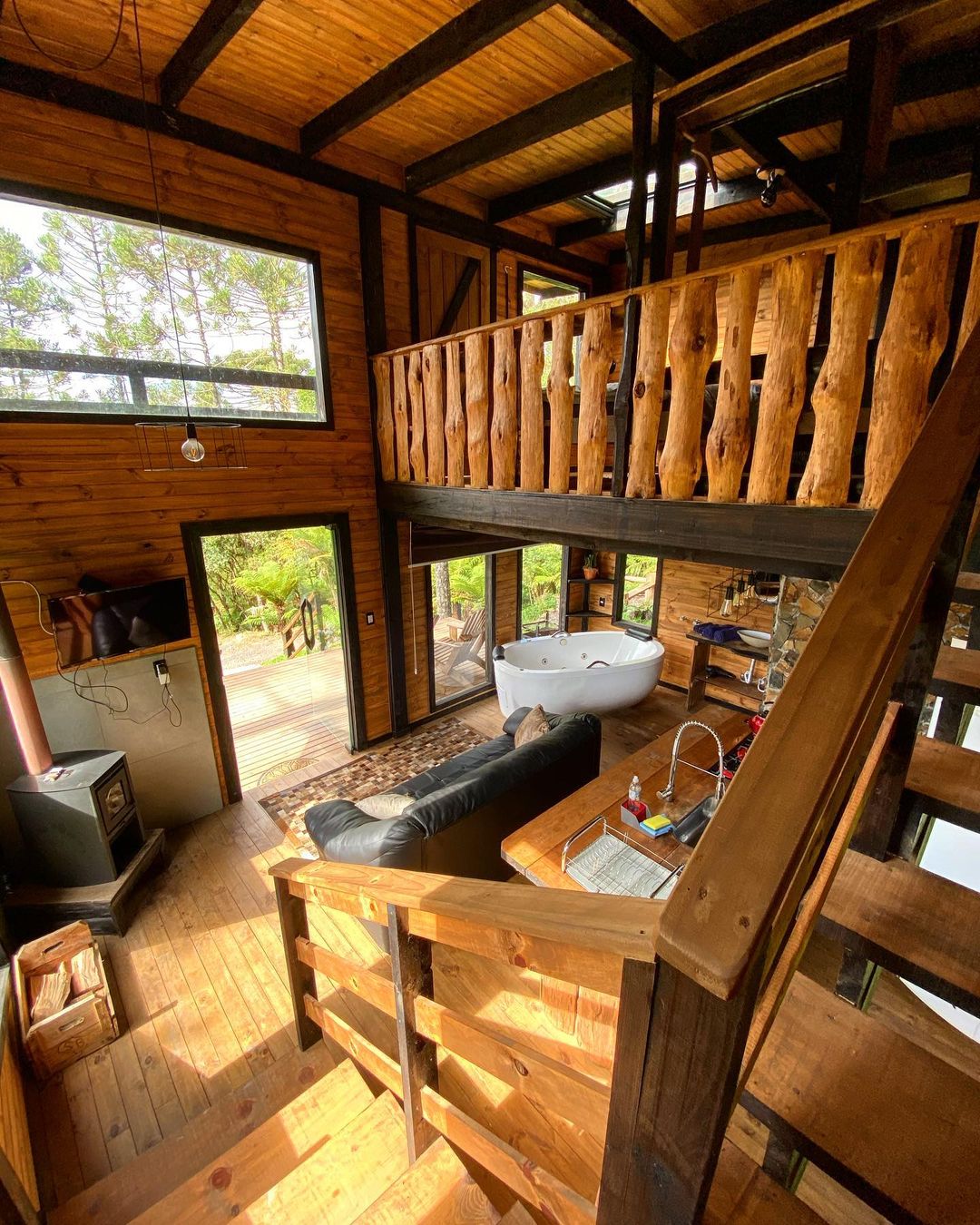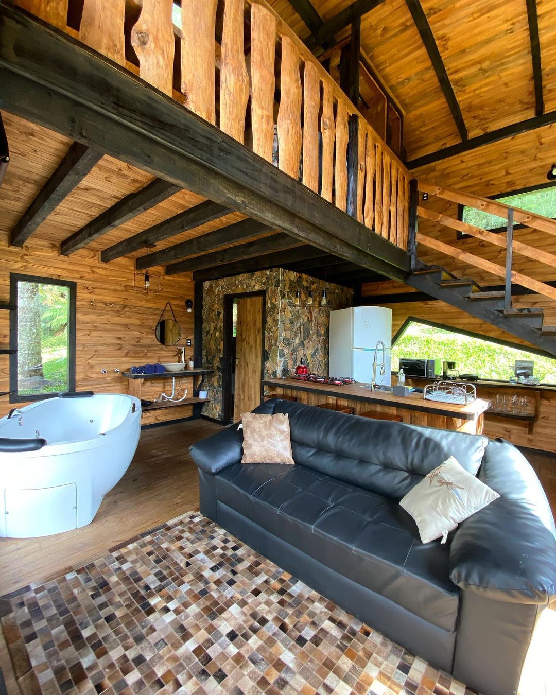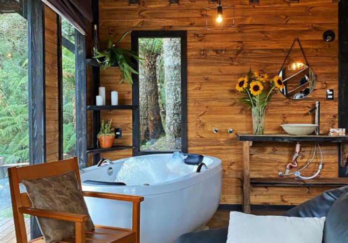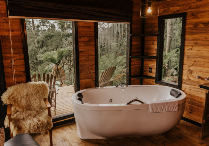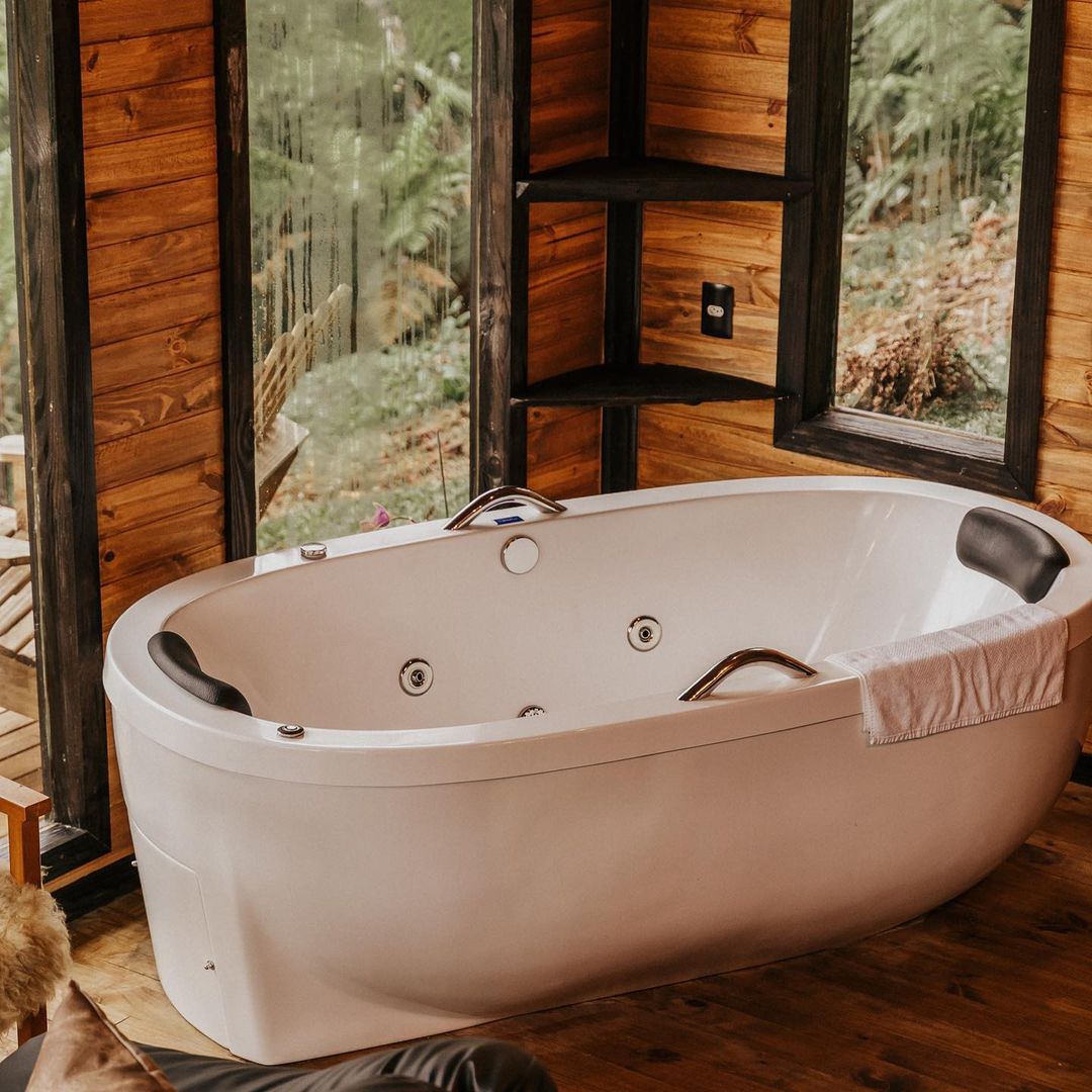 A hospedagem é uma ótima escolha para casais que procuram privacidade em meio a natureza ou família e amigos que queiram aproveitar dias mais remotos em um lugar aconchegante. A cabana é completa e inclusive conta com banheira que tem vista para a floresta nativa 🌳.
