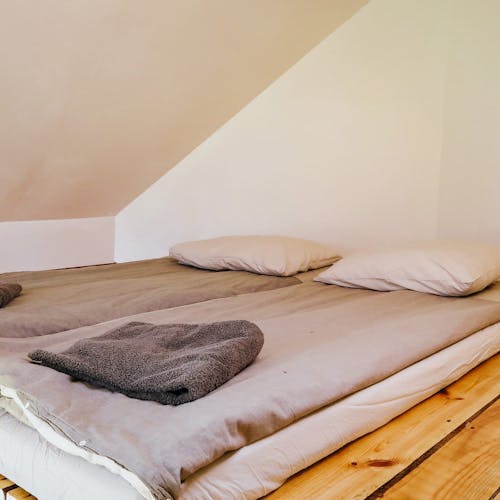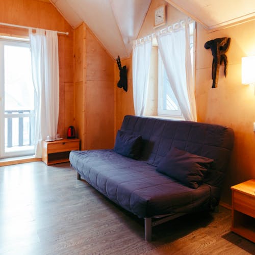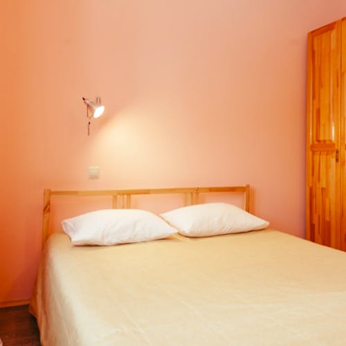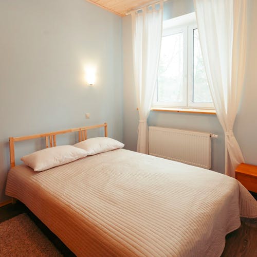 Uma casa para uma família ou um grupo de amigos. Grande cama de casal e sala de estar com sofá, cozinha com fogão elétrico, geladeira e louça, chuveiro e produtos de higiene pessoal. Possibilidade de camas extras (cama dobrável/colchão).