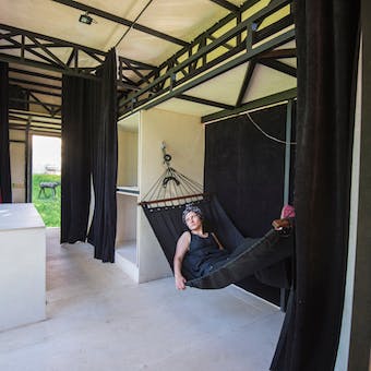 A proposta dessa experiência é que ela comece na escolha da hospedagem já sabendo que durante os dias você estará imerso em uma vivência única de arte ao ar livre e em meio à natureza, dormindo sob uma arquitetura repleta de histórias e conceitos novos. Esqueça a tv: no máximo você irá encontrar wi-fi nas acomodações. A ideia de imersão é levada a sério e o conceito de hospedagem é realmente focado no dormir e viver a arte.