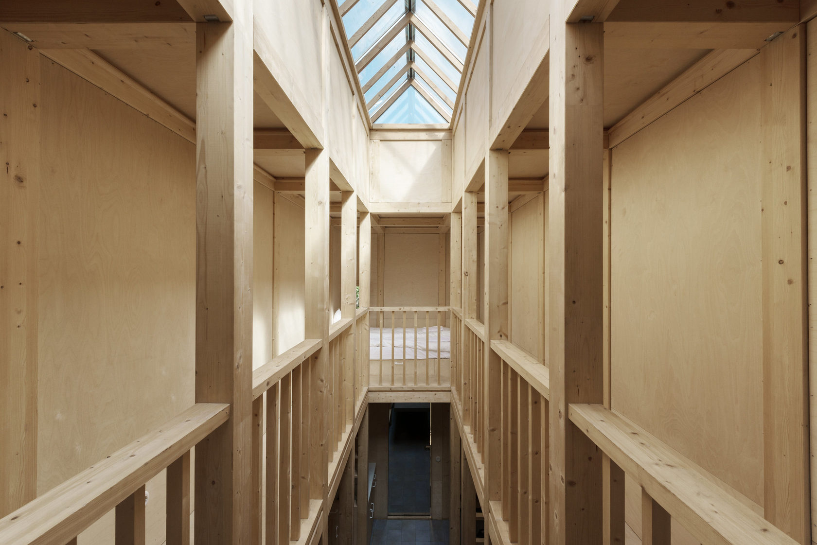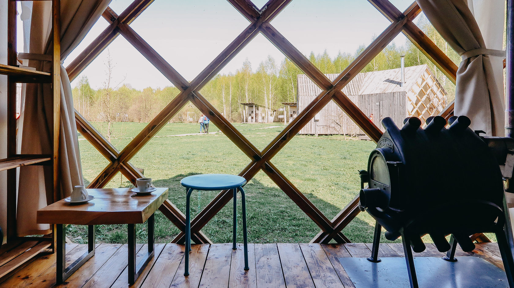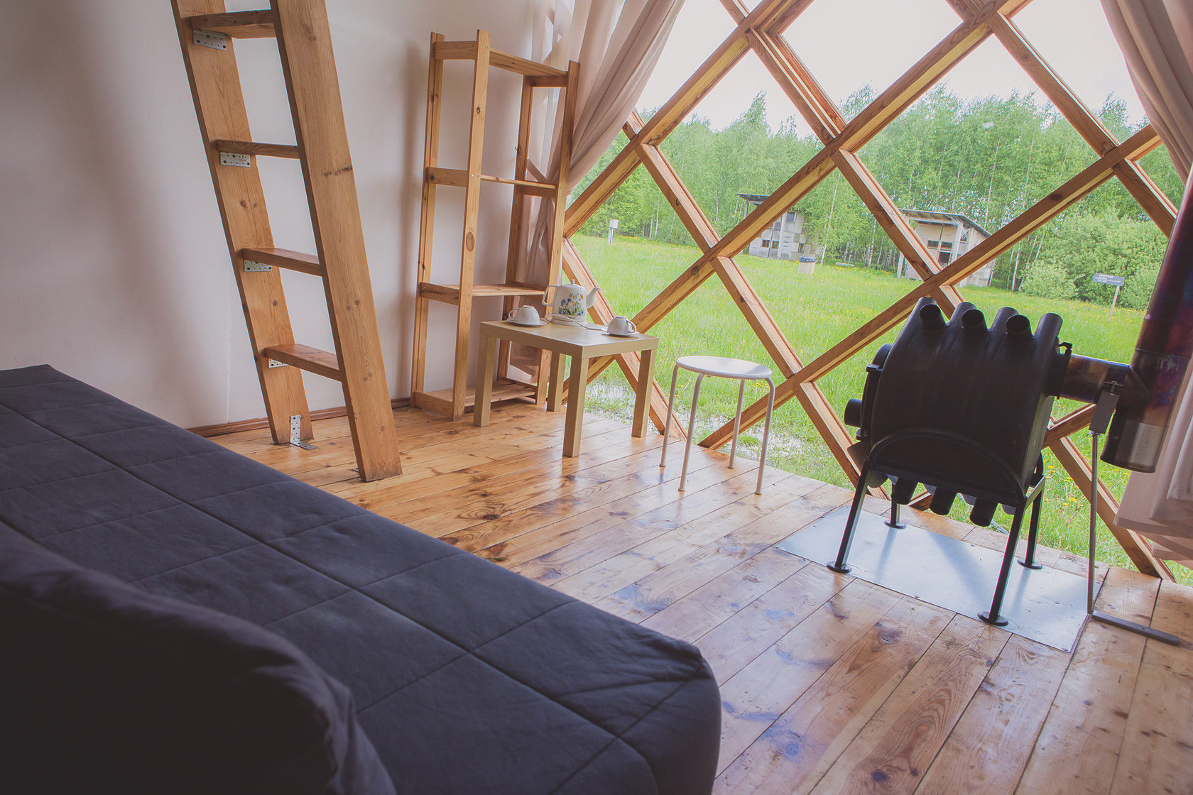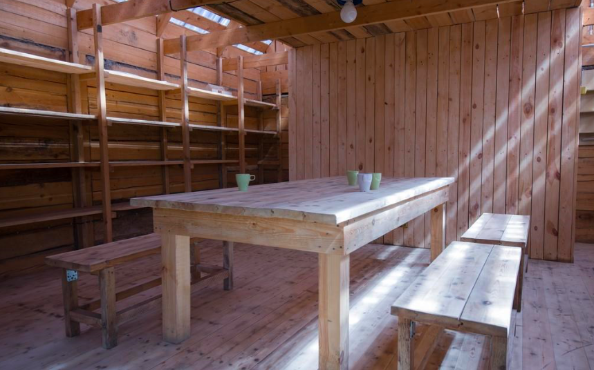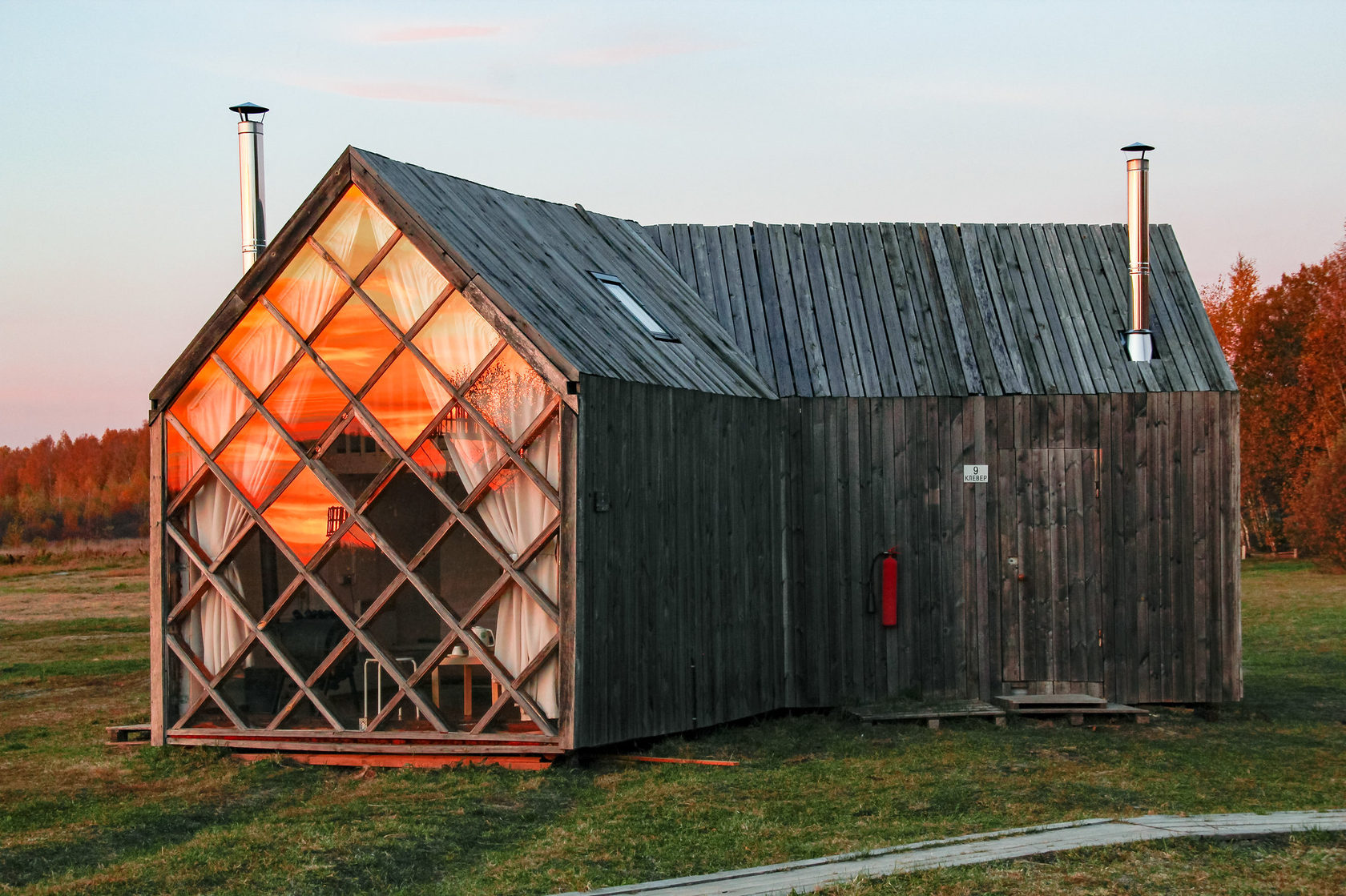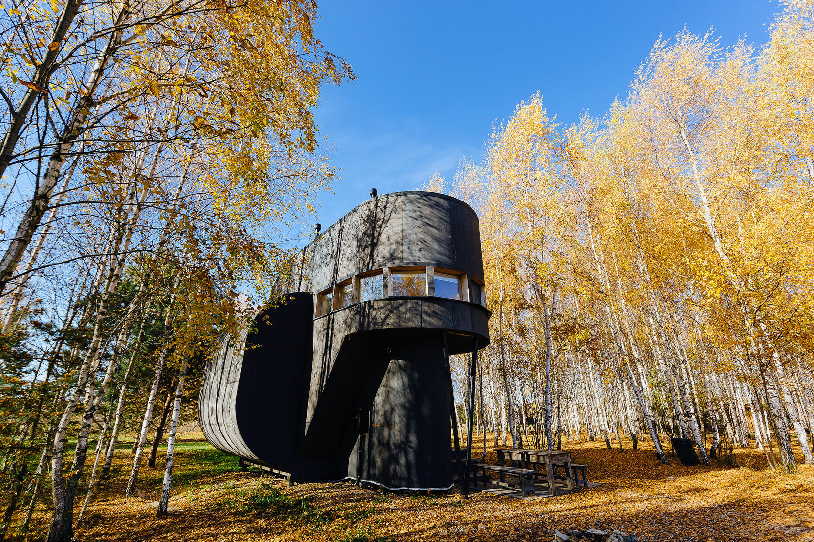 Desenhado por Mel Space, vencedor do prêmio ARXIWOOD. Fabricadas em madeira, forradas com tábuas ásperas por fora e brancas por dentro, com isolamento térmico. O quarto fica no segundo andar e uma parede da cabana é transparente. Adequada para duas, três ou 4 pessoas (duas camas extras podem ser instaladas e há berços disponíveis). Chuveiro e toilet estão localizados nas proximidades.