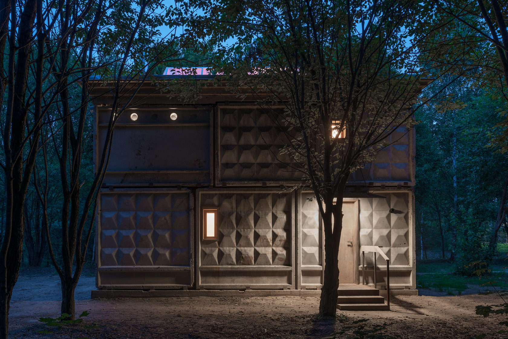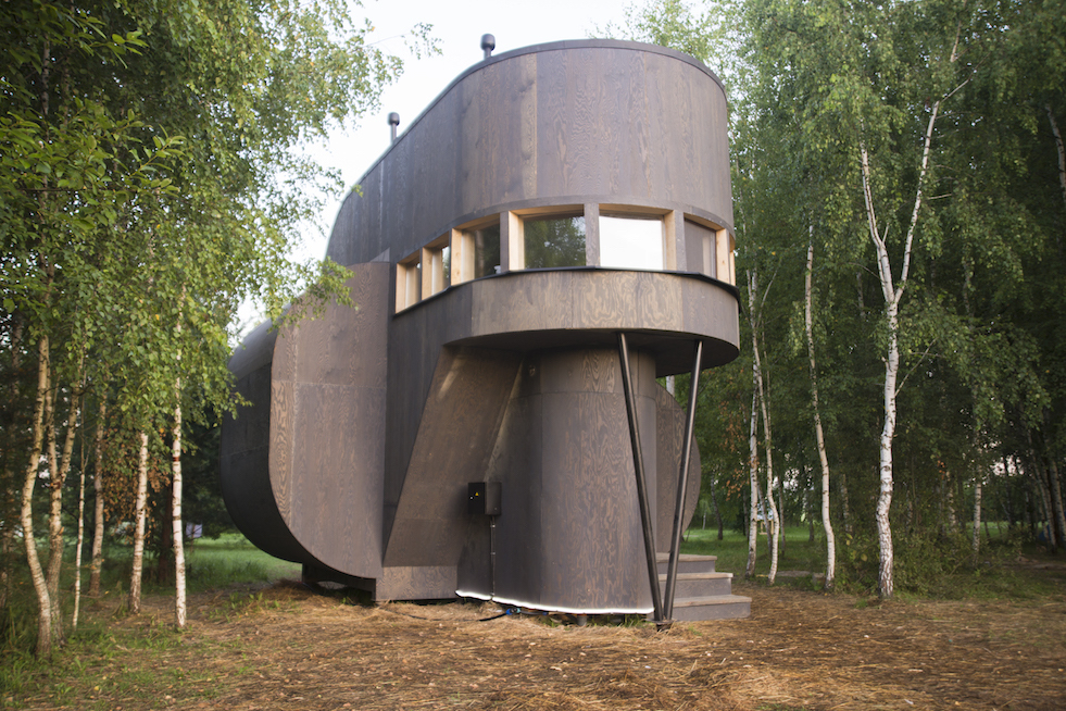 A Villa PO-2 é simultaneamente uma obra de arte criada como parte do Festival Archstoyanie 2018 e uma residência onde você pode ficar. O projeto foi executado pelo artista e arquiteto Alexander Brodsky. Sua estrutura extremamente compacta é feita de lajes de cerca de concreto da era soviética. O interior da casa é totalmente em madeira e tem uma grande mesa de concreto, uma lareira, um banheiro, uma cozinha e uma espécie de galeria para dormir e sentar no alto, uma grande clarabóia lança uma luz atmosférica enquanto é possível ver parte da floresta através das janelas.