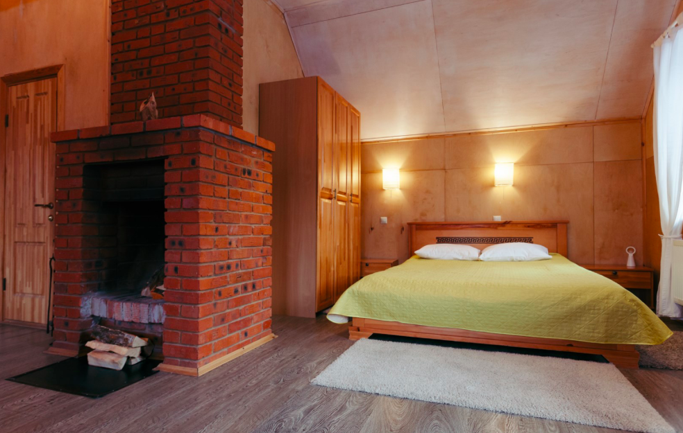 Uma casa no território do parque de arte Nikola-Lenivets com colchões altos, banheiro, chuveiro com água quente, geladeira, aquecedor, transporte público e wi-fi. Capacidade para 4 pessoas.