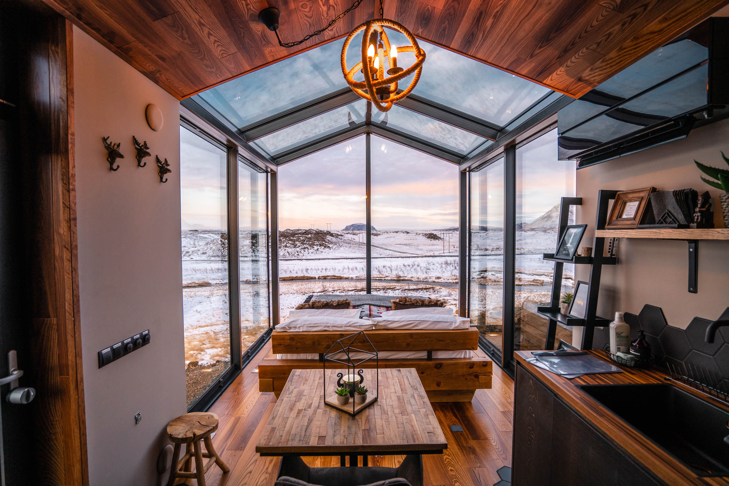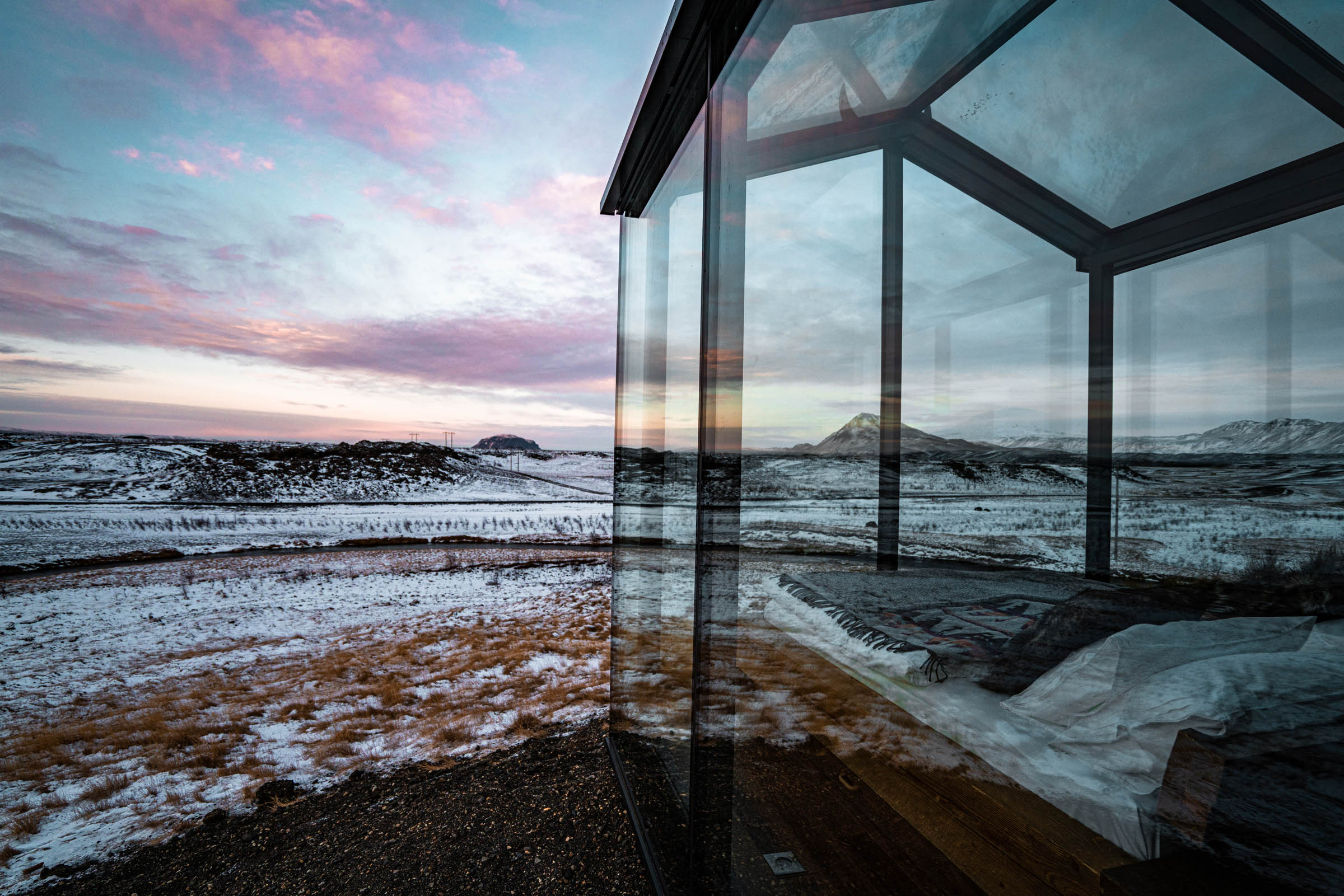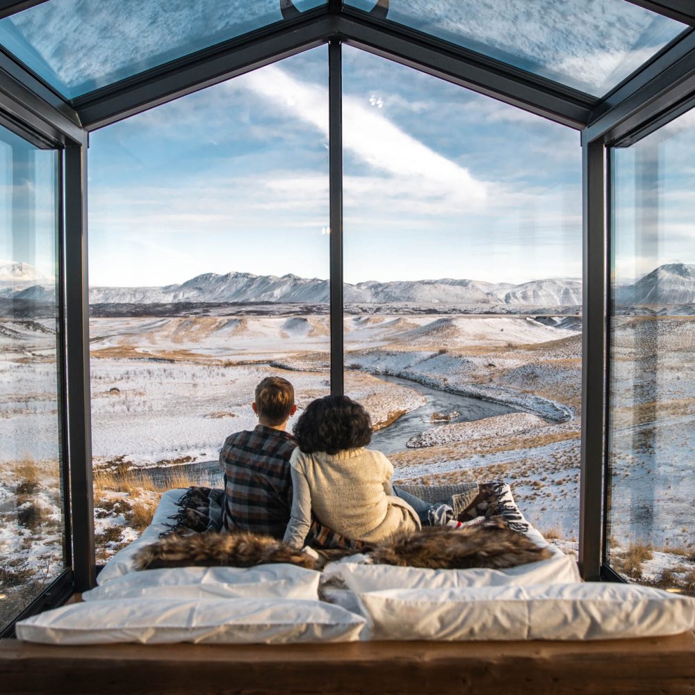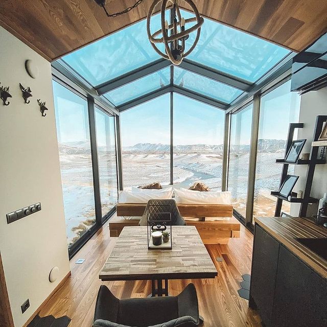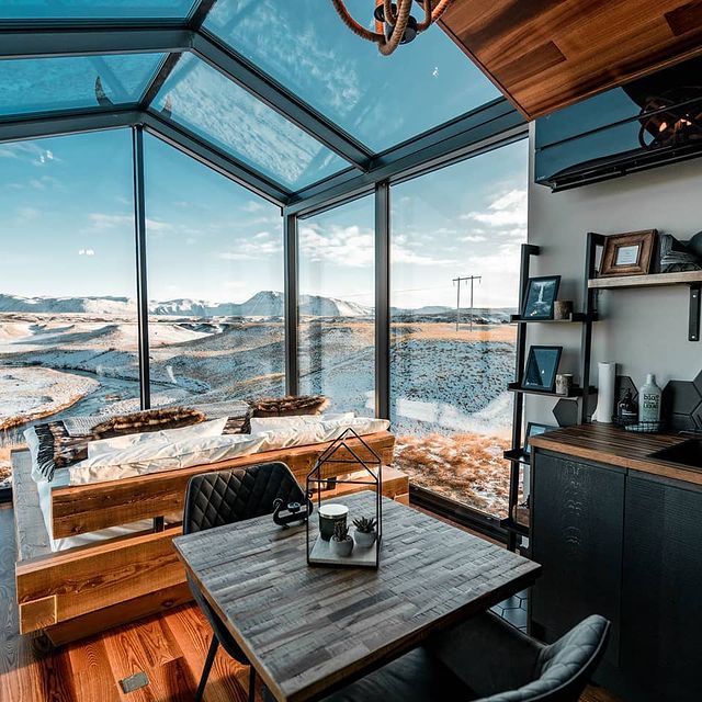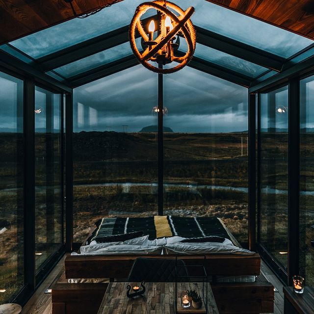 Os proprietários do espaço são na verdade uma jovem família de suíços e alemães, que tiveram a ideia de criar um lugar pra dar aquela respirada por alguns dias em novos ares com atmosfera romântica e ao mesmo tempo única. Como já é de conhecimento geral, essas acomodações com transparência e muito vidro na Islândia são bem populares pelos fenômenos naturais do local como a aurora boreal e o sol da meia-noite, onde é possível assistir todo esse espetáculo da própria cama, já que teto e paredes são de vidro.