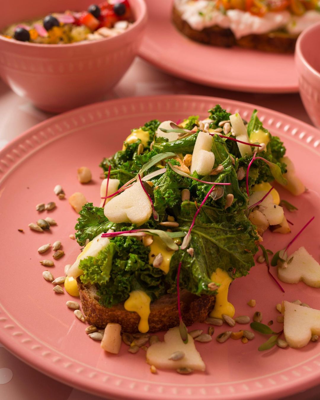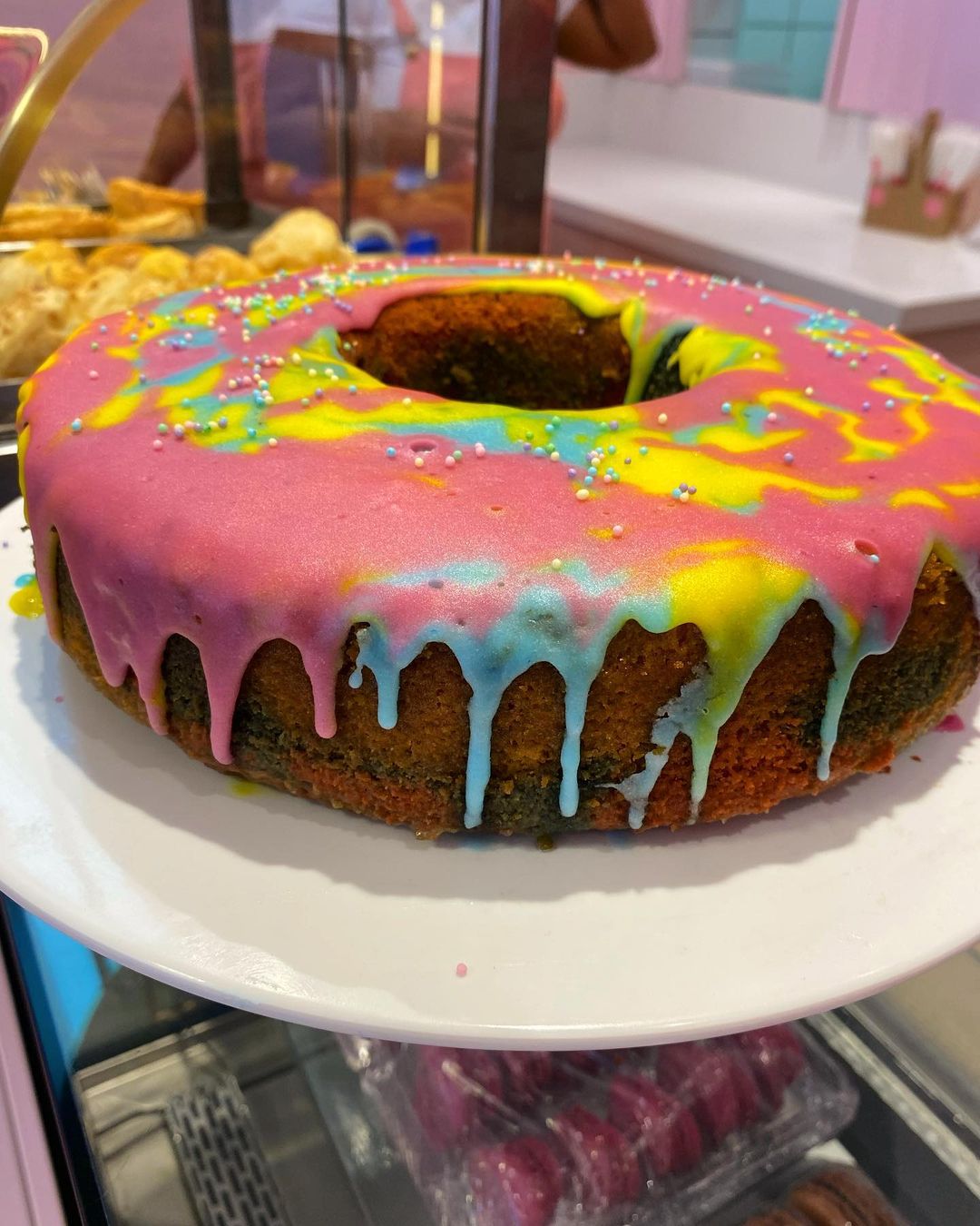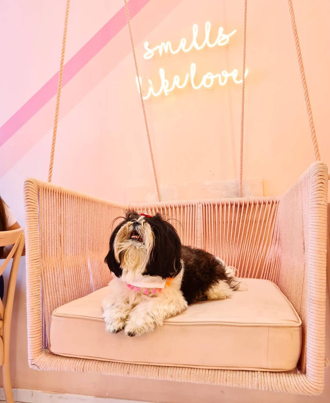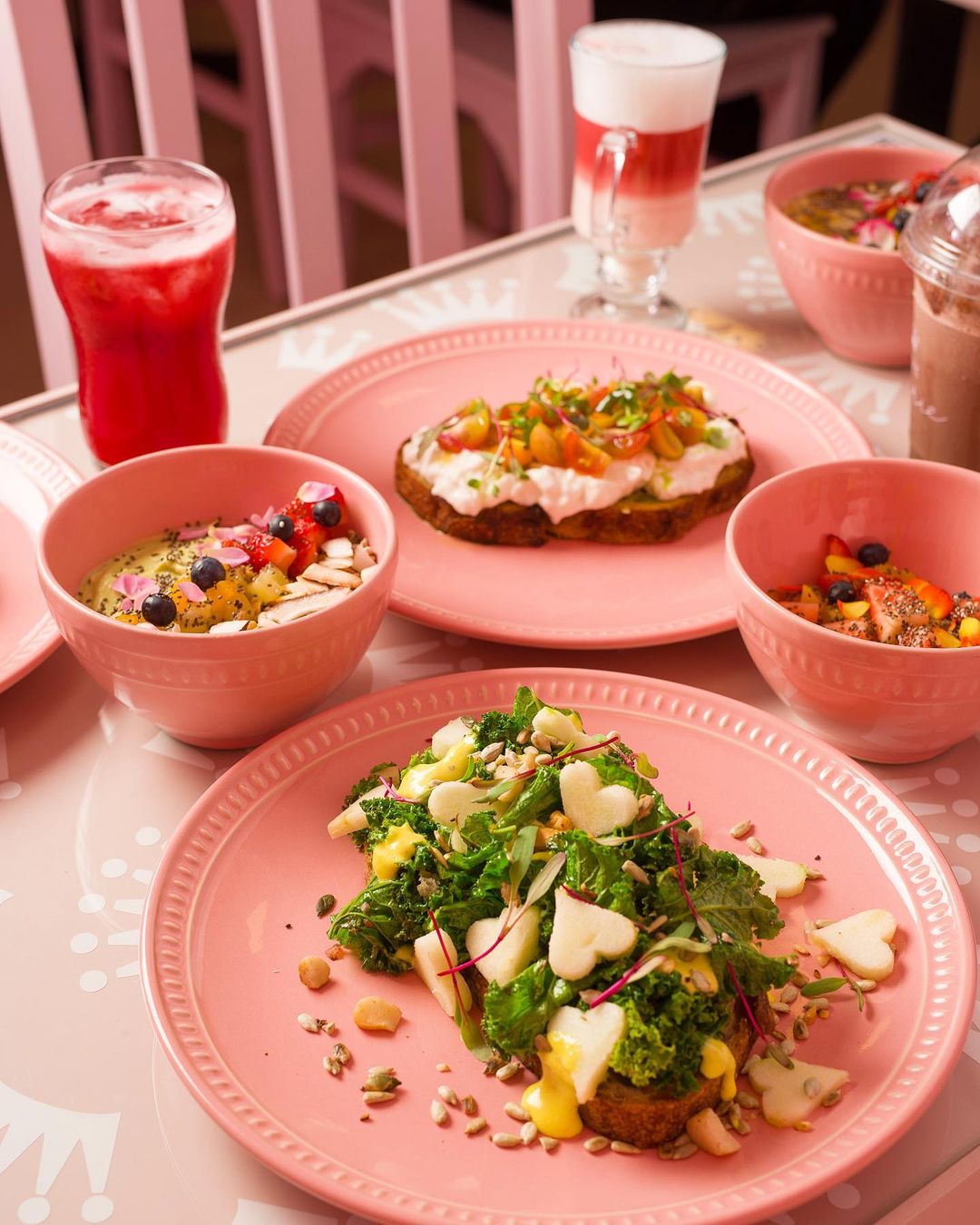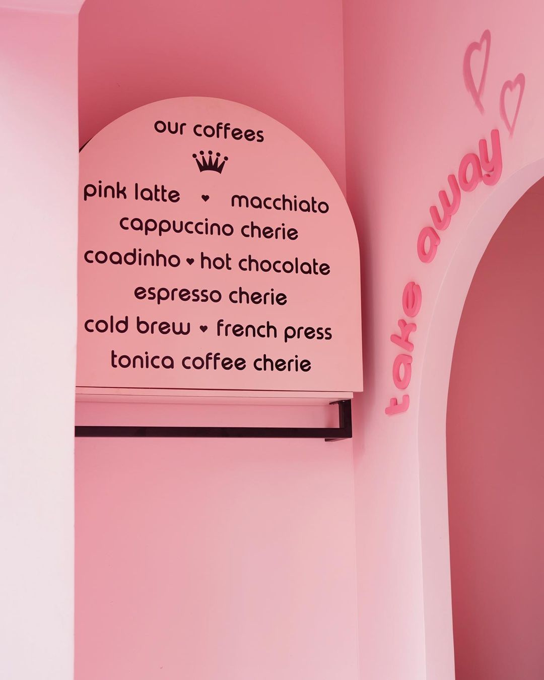 A decoração é repleta de espaços feitos justamente para que os clientes façam uma parada estratégica para as fotos, com cenografia toda pintada em cor de rosa #óbvio, neons e até balanço.