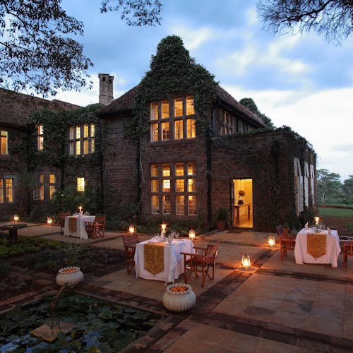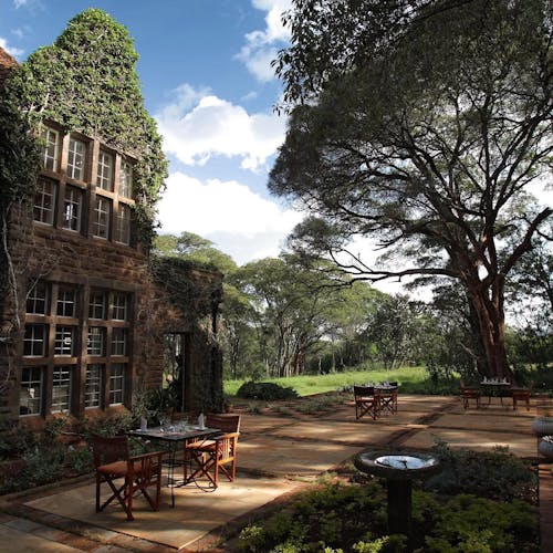 O hotel é pequeno e exclusivo. Possui apenas 12 quartos e uma das melhores cozinhas de Nairobi.
