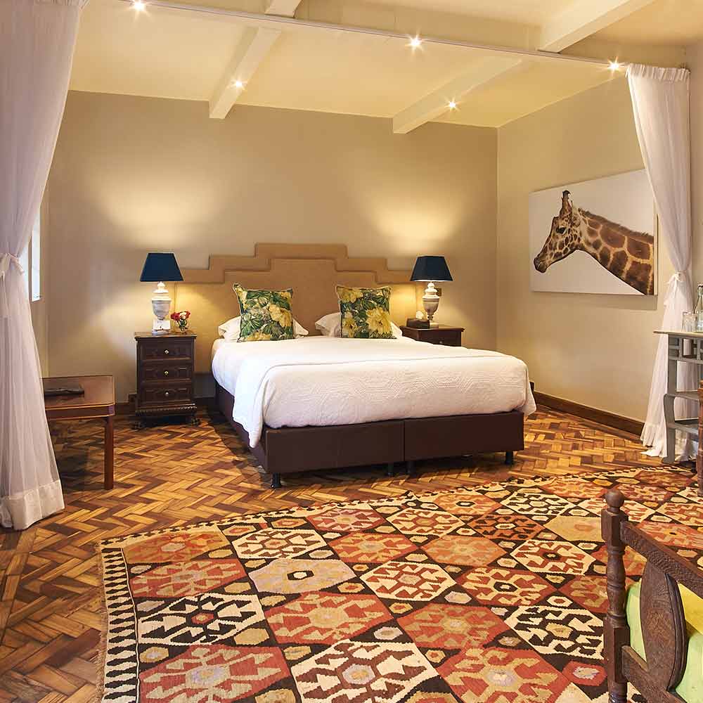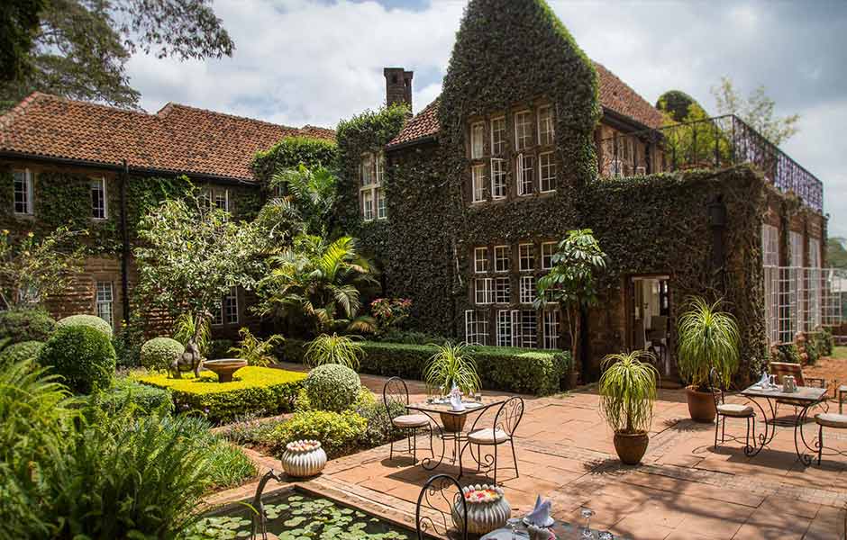 O hotel é pequeno e exclusivo. Possui apenas 12 quartos e uma das melhores cozinhas de Nairobi.