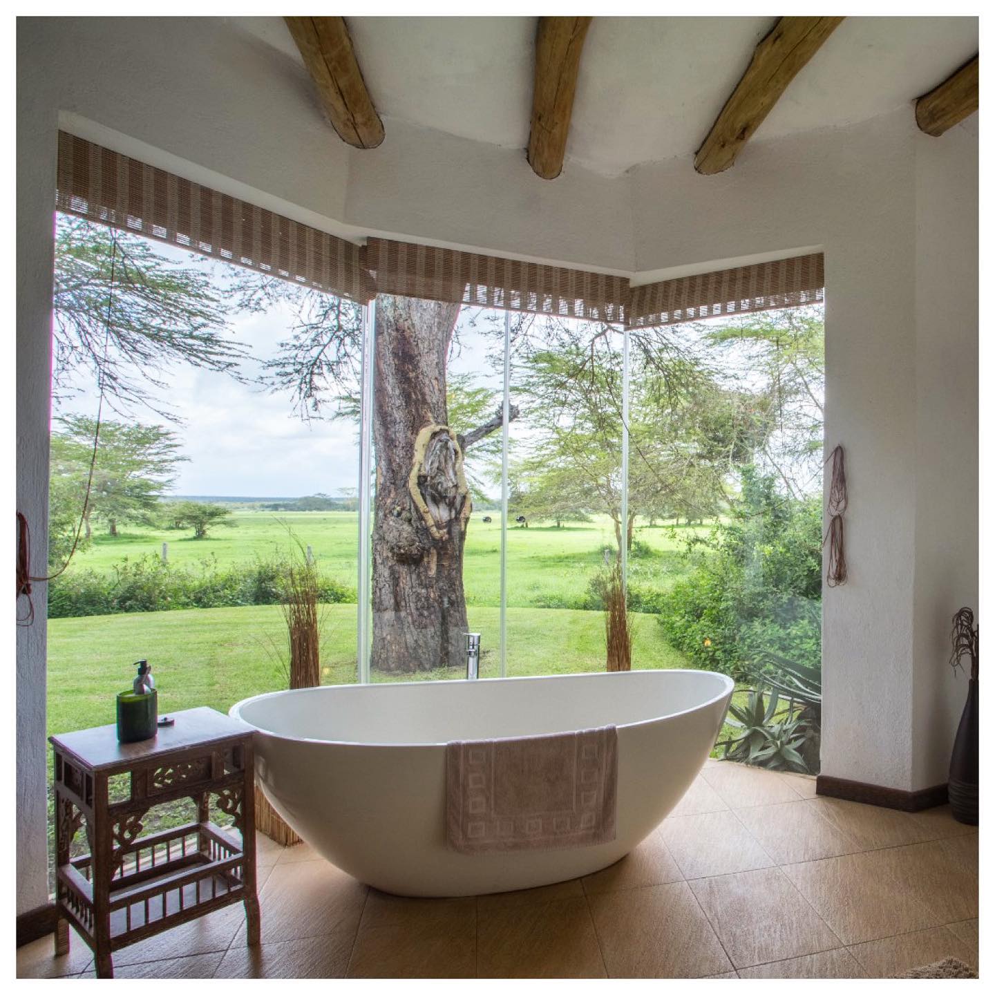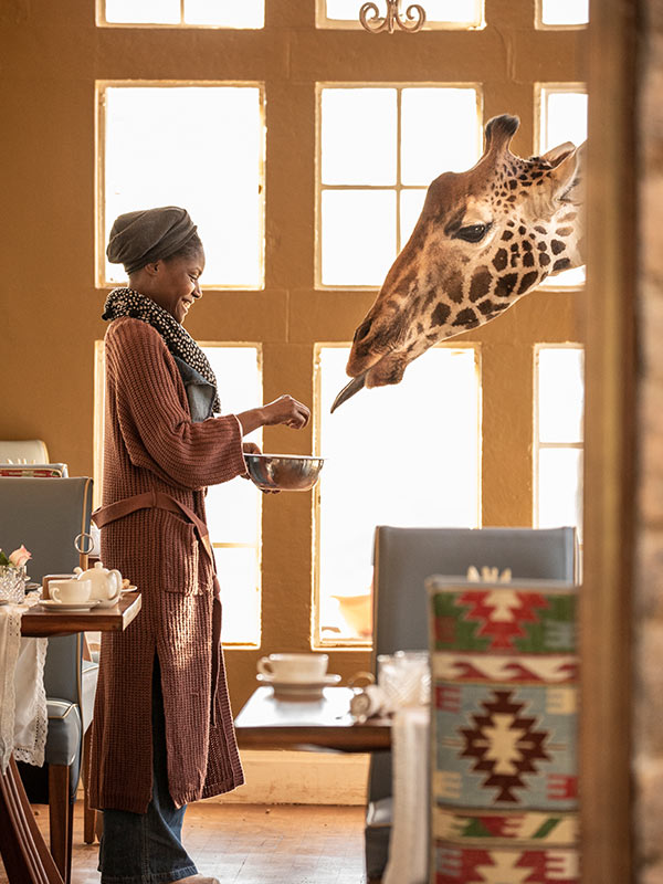As girafas invadem as janelas enquanto os visitantes estão tomando o café da manhã, em busca de uns cafunés e alguns snacks. É proibido dar qualquer alimento que não seja a ração específica à base de grama fornecida pelo hotel. Ao lado de fora, no fim da tarde quando elas costumam também passar por lá antes de voltar pra floresta, é possível ver o pôr-do-sol e recebê-las enquanto toma seu chá da tarde nas mesinhas do jardim. Também é possível vê-las da janela de alguns quartos, já que facilmente elas alcançam os dormitórios, que ficam localizados na parte superior e outros também de frente para o deck do jardim.