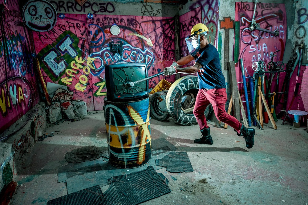 Encontramos em São Paulo o recém inaugurado em 2021 Rage Room CT, lugar que promove essa sessão de descarrego, inclusive temática! Tá cansado do trabalho doméstico? Arrebente microondas, tvs, ventiladores. Tá de saco cheio do chefe? Quebre o computador, a mesa. Sempre teve vontade de encarnar o rockstar e quebrar uma guitarra? Nem os instrumentos musicais escapam dessa.