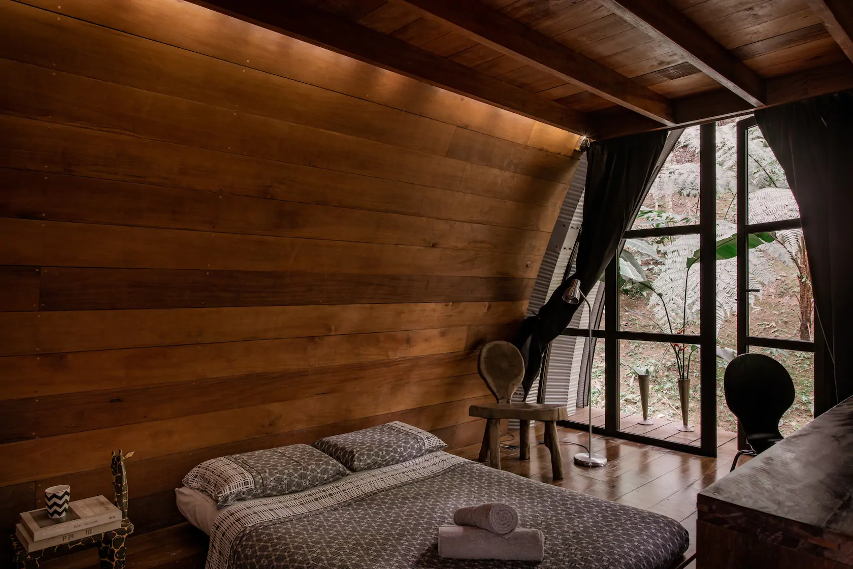 A casa Arca foi criada pelo proprietário e também arquiteto e é um refúgio imerso na natureza dentro da Aldeia Rizoma, no meio da Mata Atlântica, fazendo fronteira com o Parque Nacional de Bocaina. Hospeda até 6 pessoas.