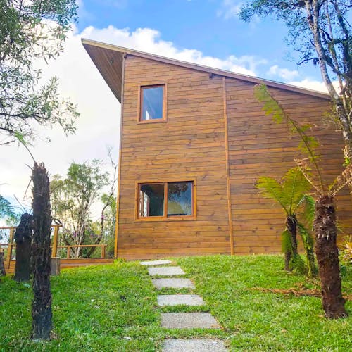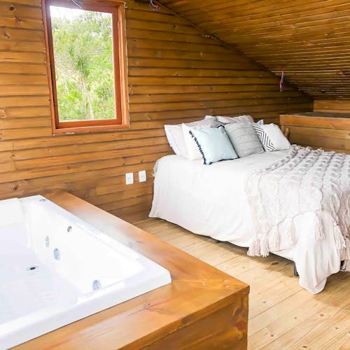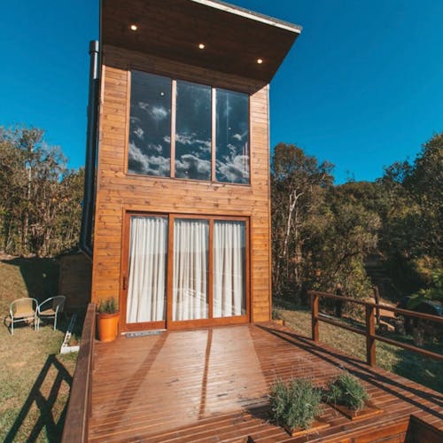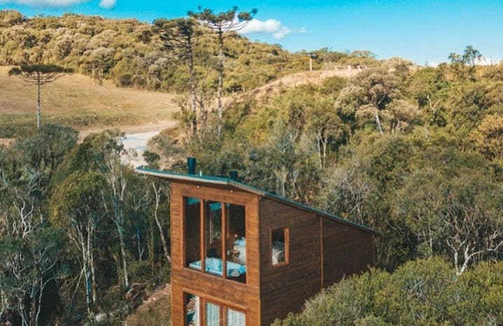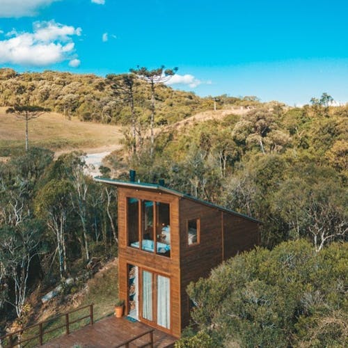 Situada dentro de uma fazenda, a Cabana Xaxim proporciona uma experiência de certo isolamento com conforto, romantismo e tranquilidade.