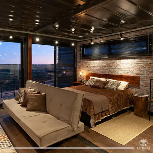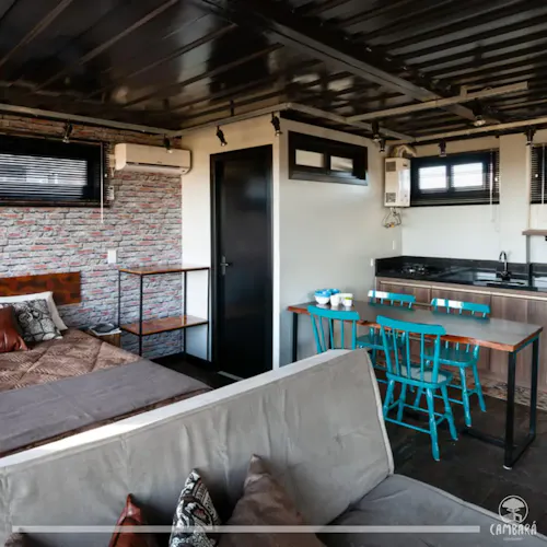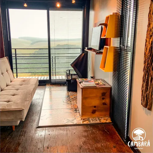 Cambará Container Blue é uma proposta de hospedagem pelo Airbnb dentro de um super container!