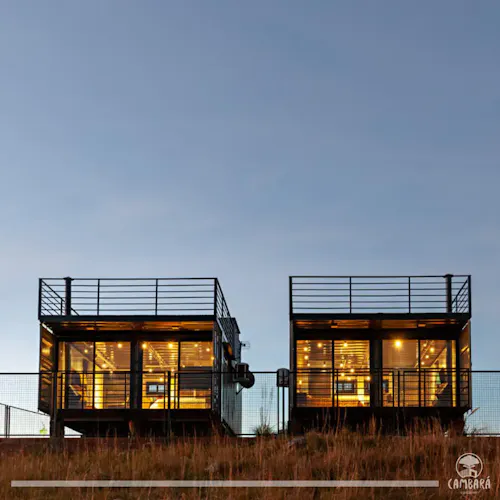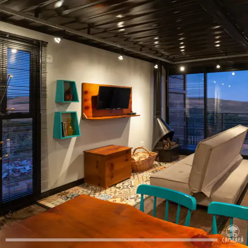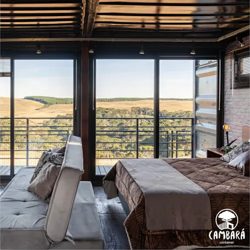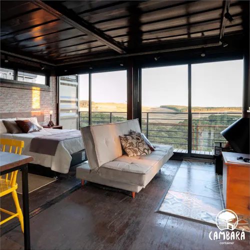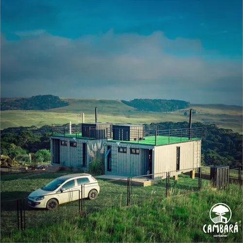 Conheça a Cambará Container Blue, a casa que te leva pra dormir dentro de um container com vista incrível pro vale no RS