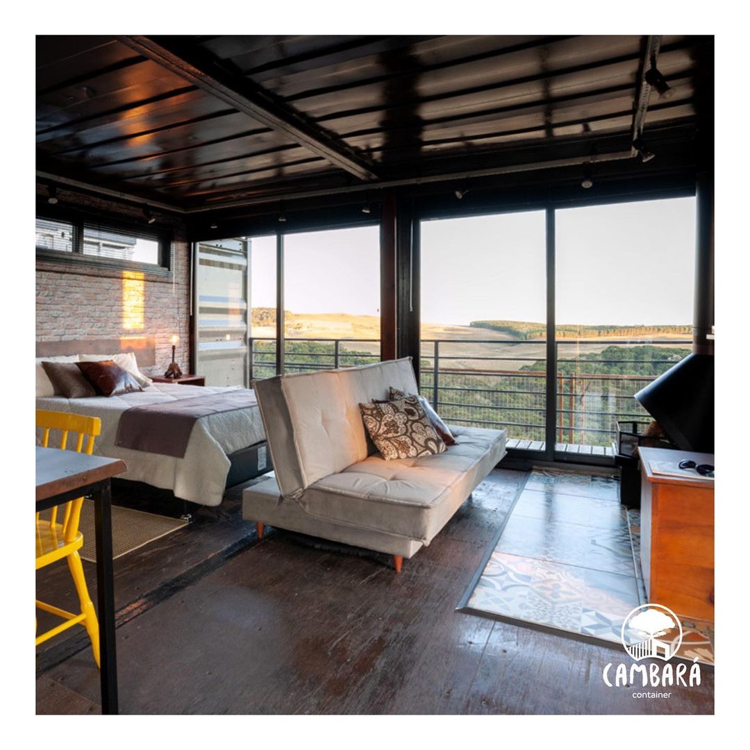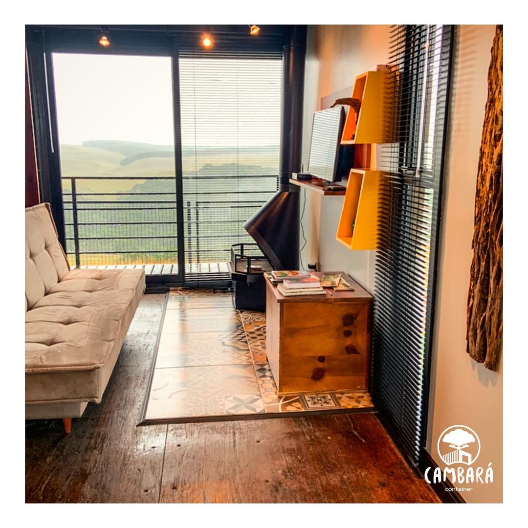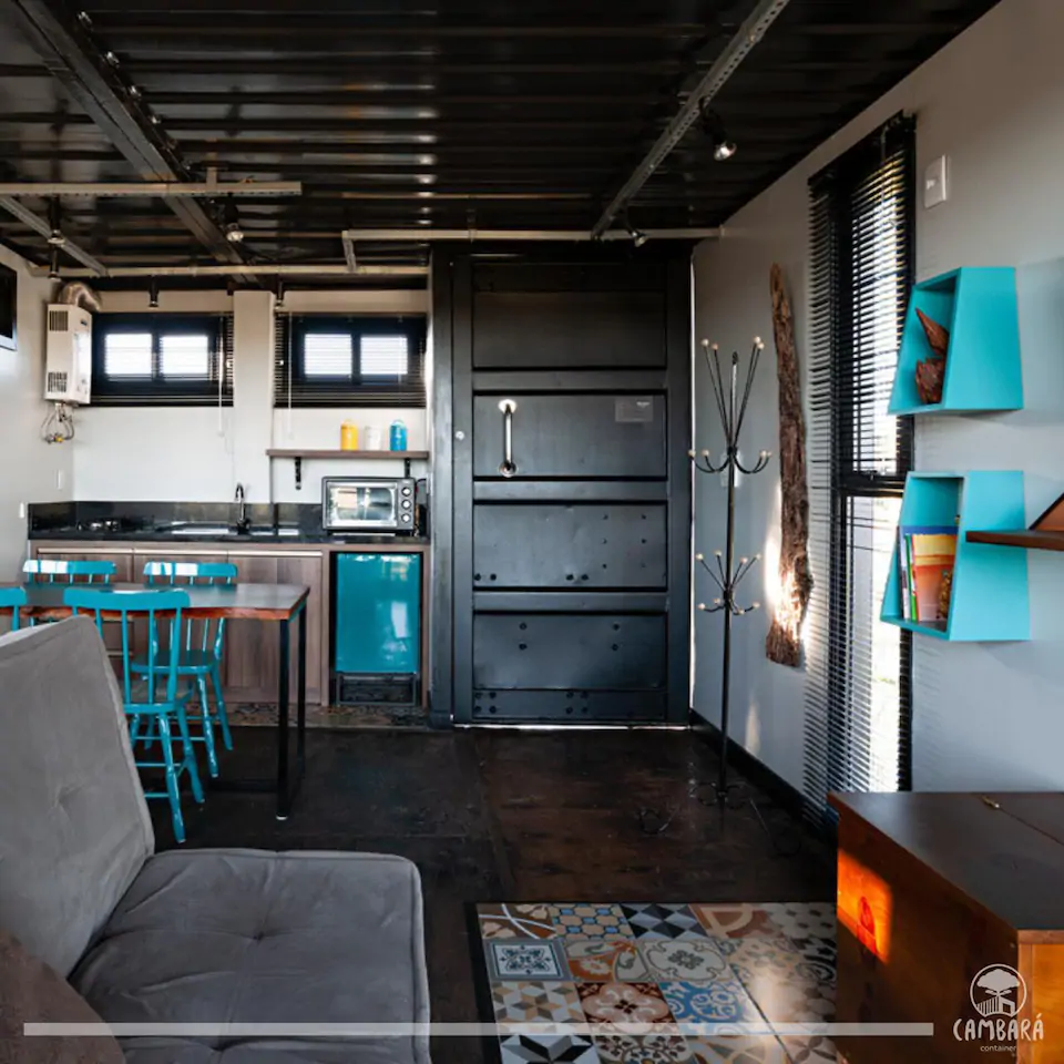 Cambará Container Blue é uma proposta de hospedagem pelo Airbnb dentro de um super container!