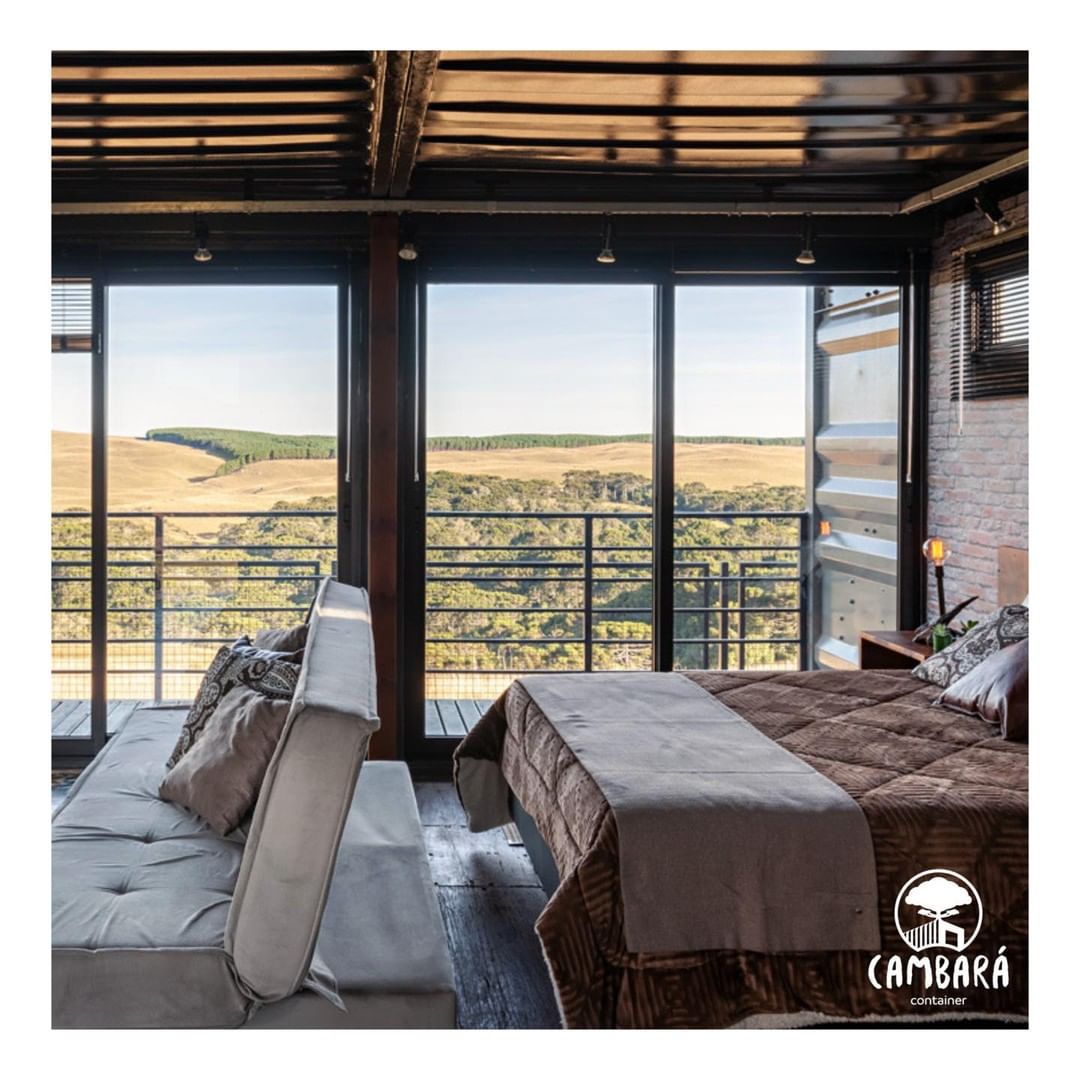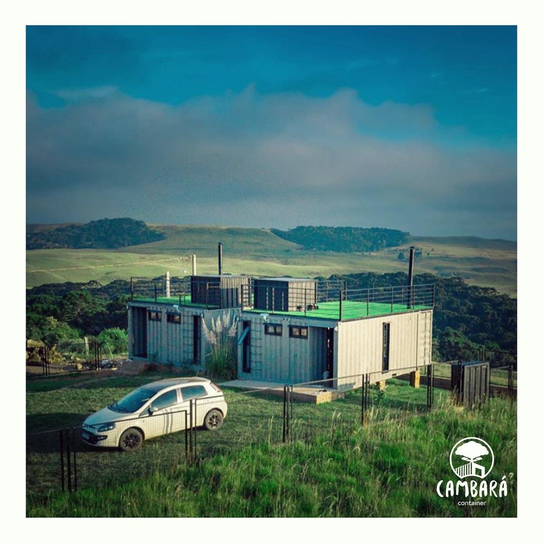 Conheça a Cambará Container Blue, a casa que te leva pra dormir dentro de um container com vista incrível pro vale no RS