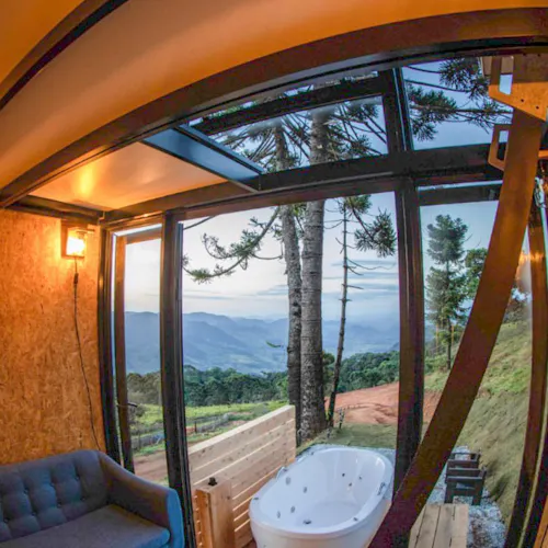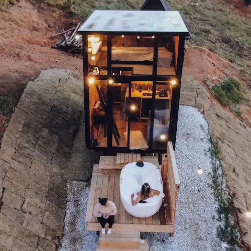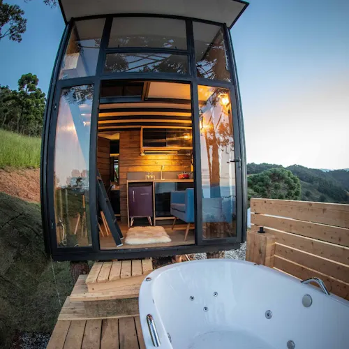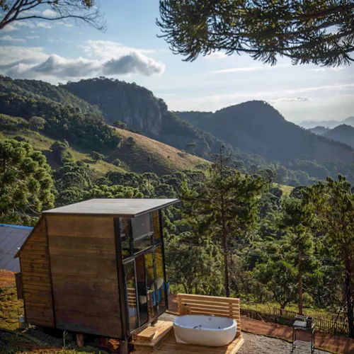 Uma tiny house aconchegante de apenas 15m2, com cozinha completa para que os hóspedes preparem suas próprias refeições. Uma vista espetacular da Serra e uma hidromassagem ao ar livre para quem quer relaxar aos pés da Mantiqueira.