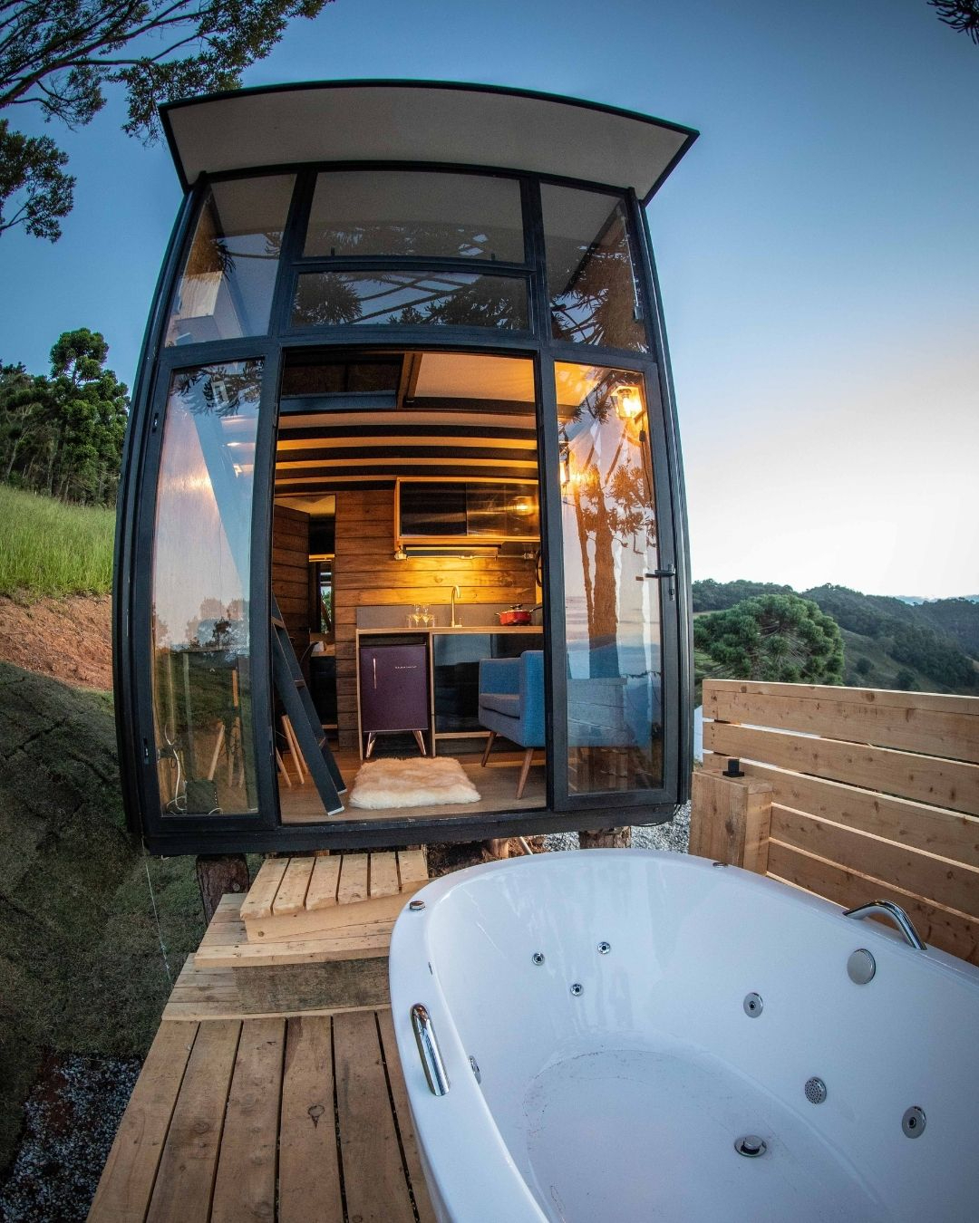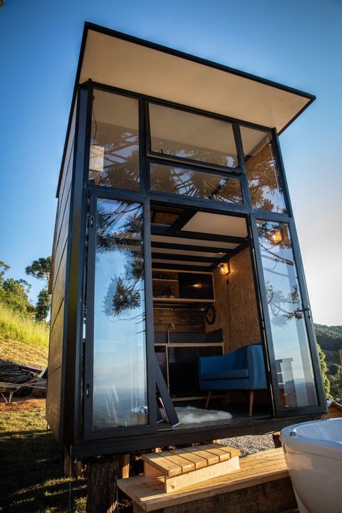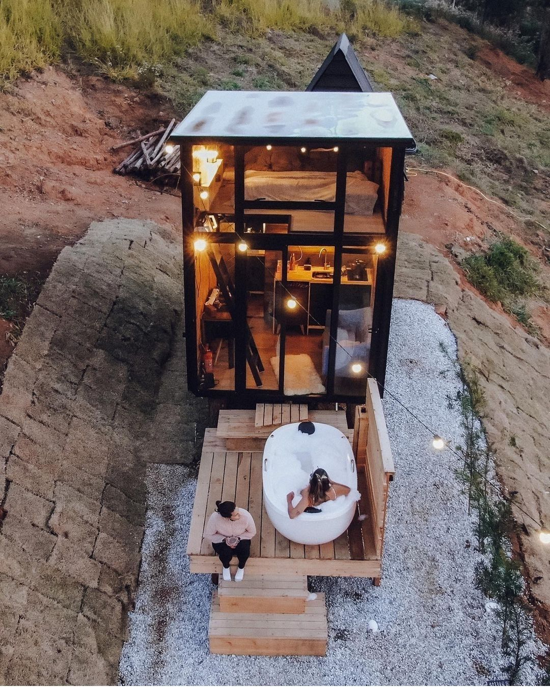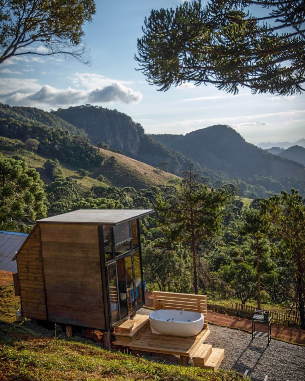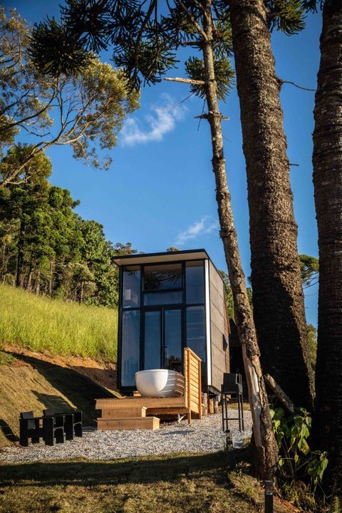 Casa Cubo: A Tiny House da Serra da Mantiqueira que é a mais nova hospedagem no estilo cabana, com banho ao ar livre e vista pra montanha