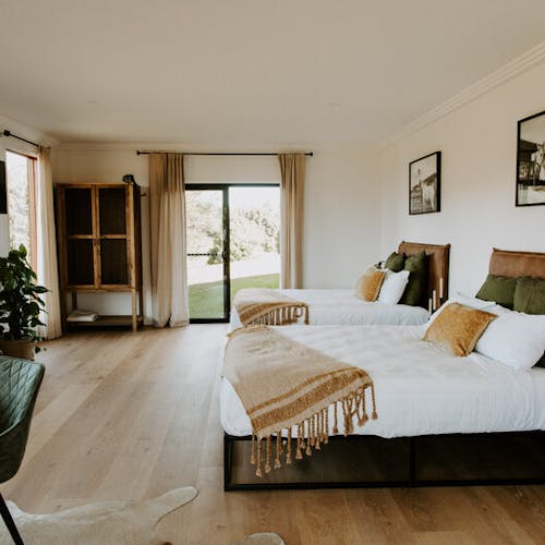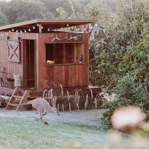 A casa da fazenda foi projetada para entreter todas as idades, para que você possa sentar e desfrutar de um vinho enquanto as crianças brincam na cozinha de barro, colhem ervas da horta, vão explorar cangurus, nadar na piscina ou brincar nos balanços feitos à mão.