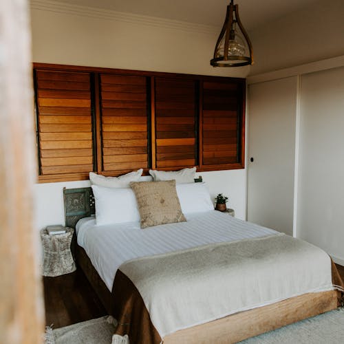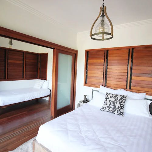 O nível superior tem 4 quartos muito bem decorados no estilo boho.