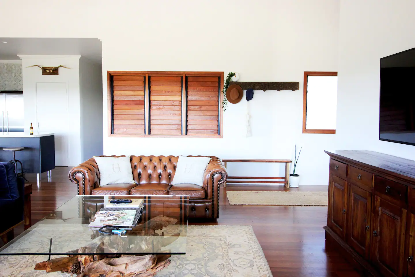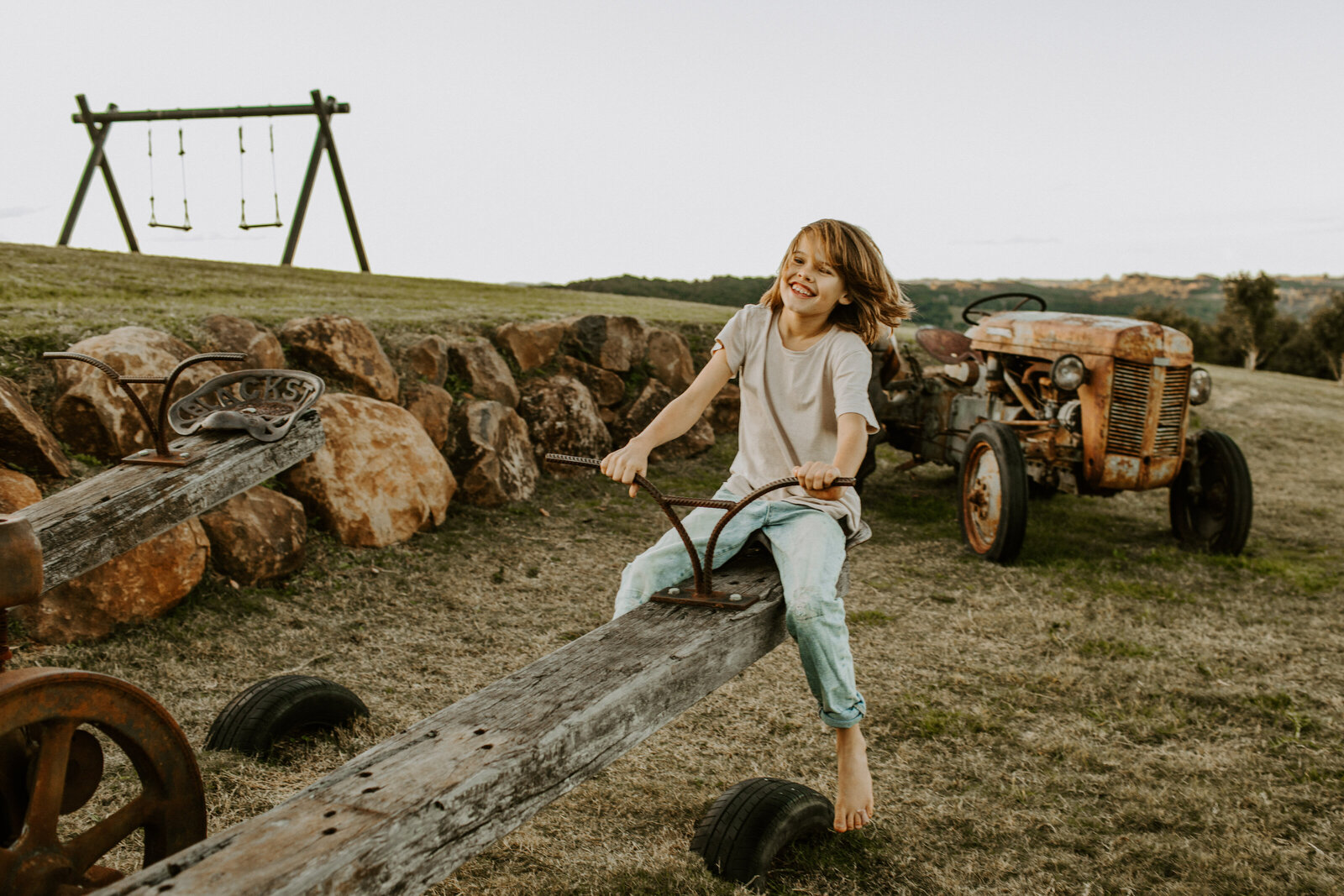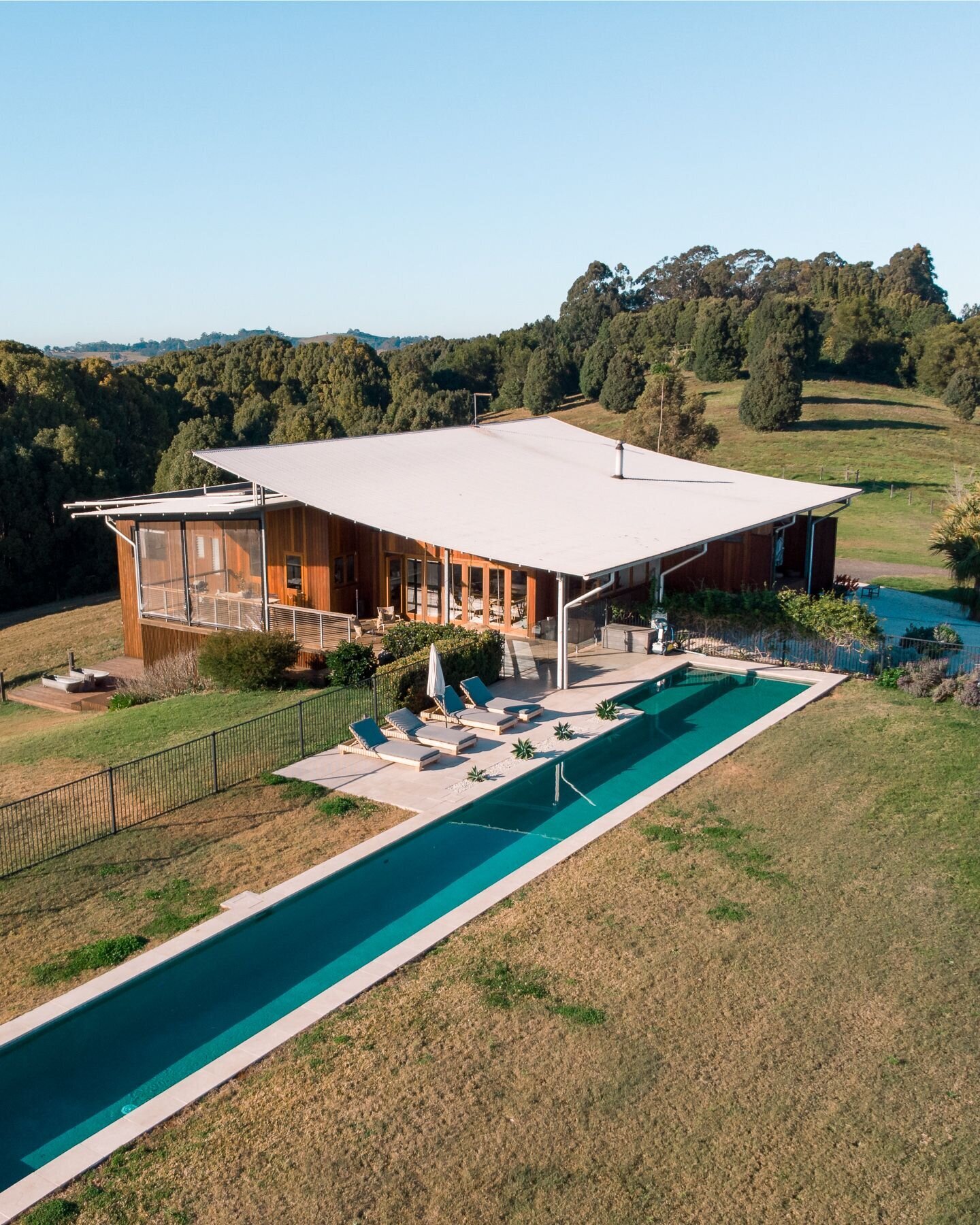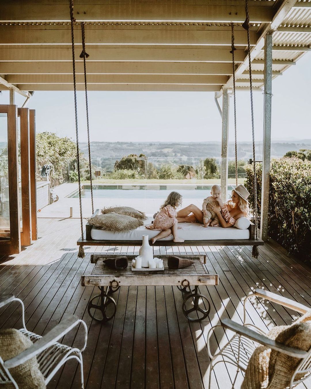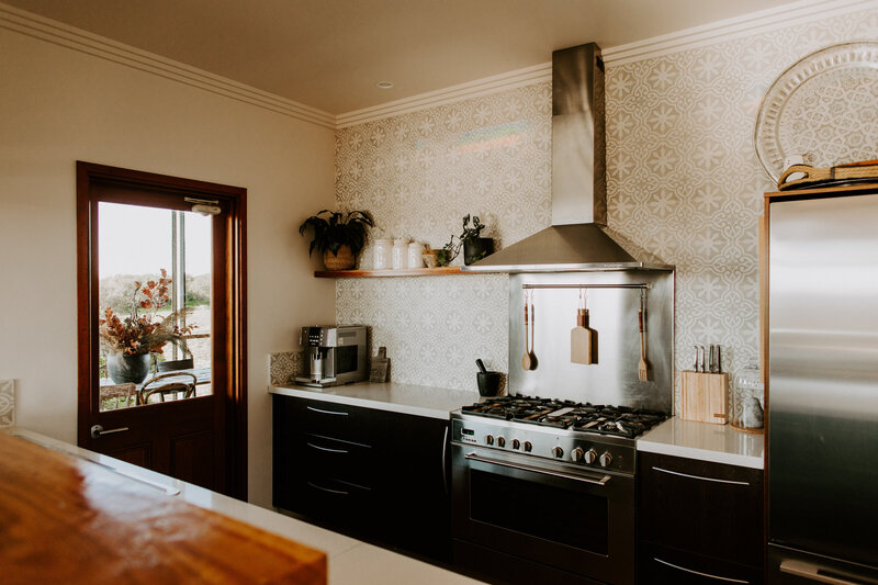 A casa da fazenda foi projetada para entreter todas as idades, para que você possa sentar e desfrutar de um vinho enquanto as crianças brincam na cozinha de barro, colhem ervas da horta, vão explorar cangurus, nadar na piscina ou brincar nos balanços feitos à mão.