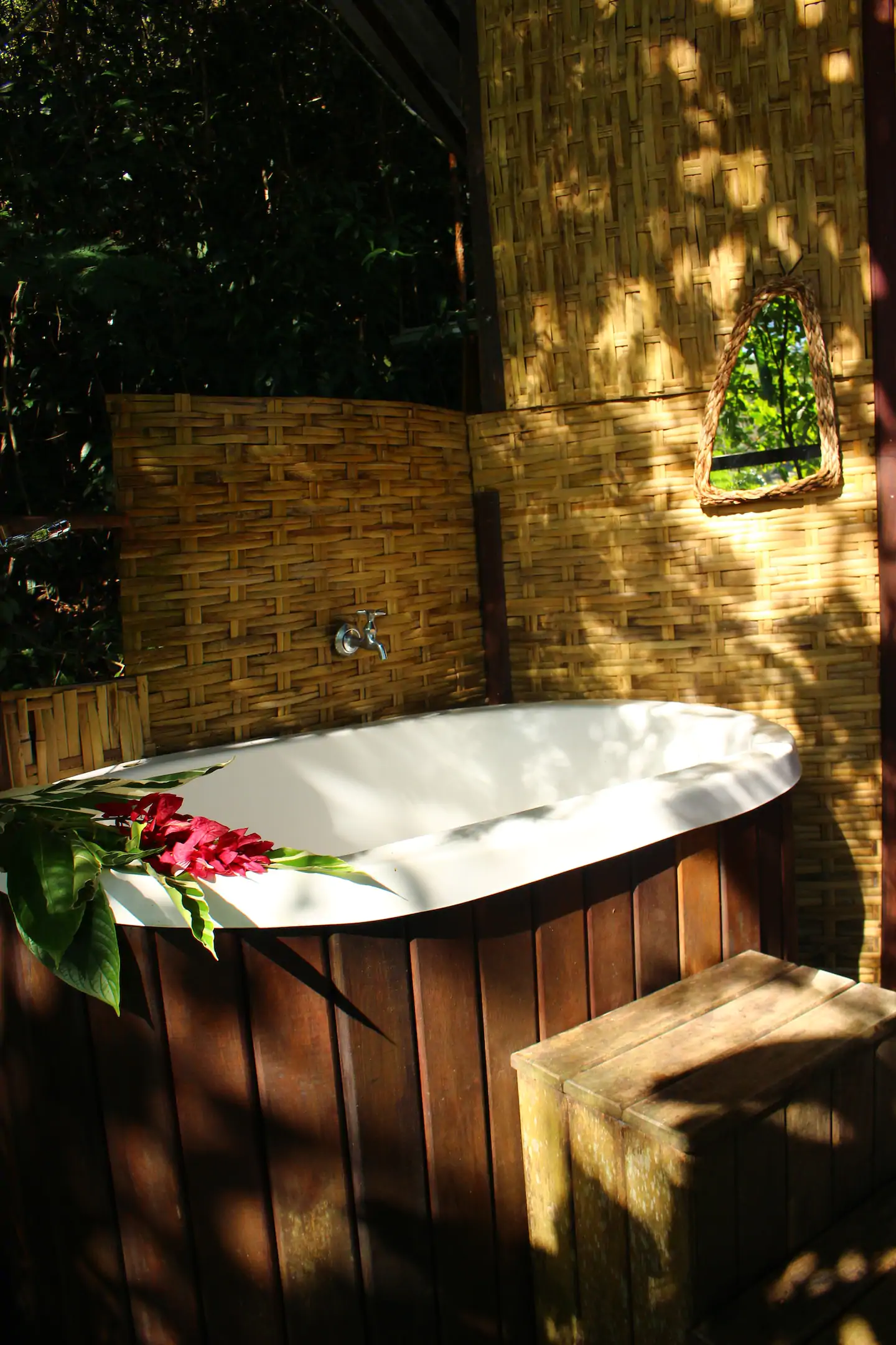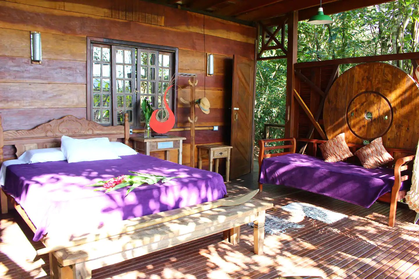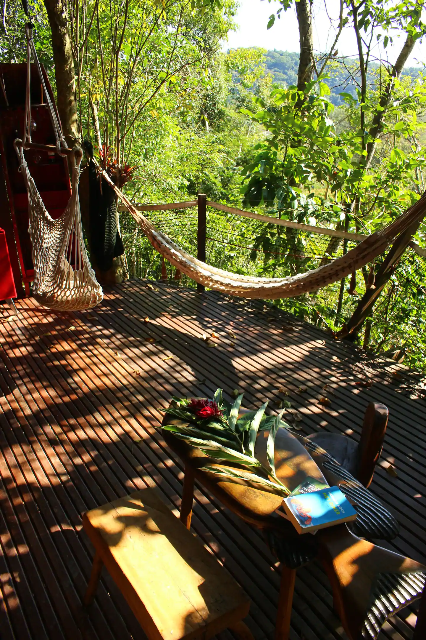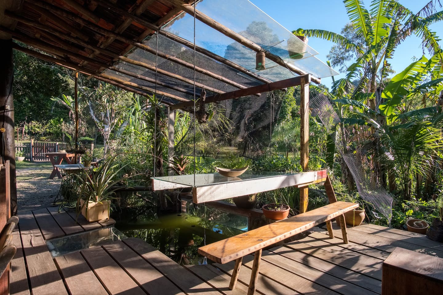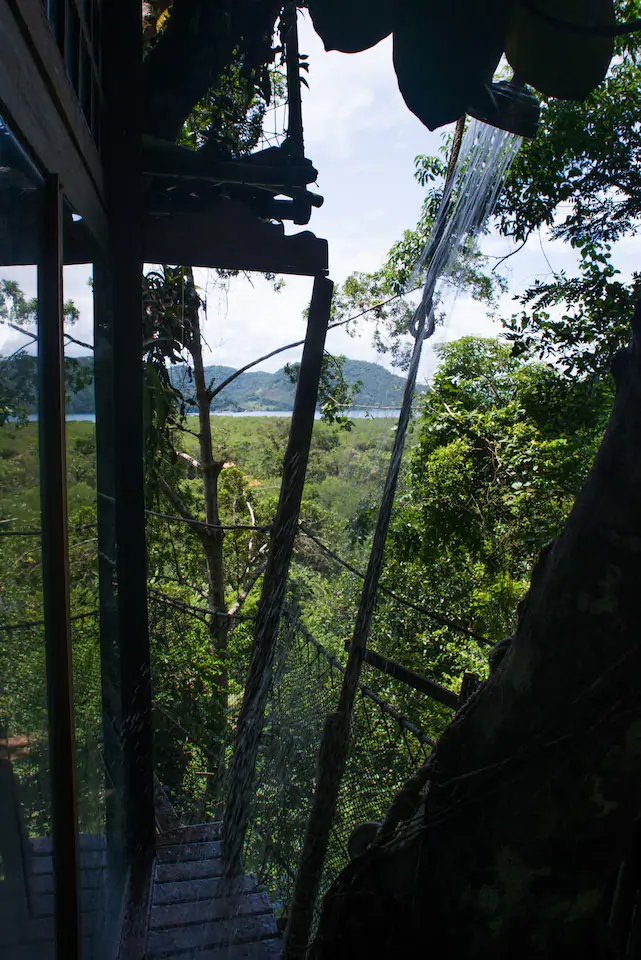 O sonho virou realidade! Essa casa na árvore é totalmente ecológica, construída 100% em cima de uma antiga jaqueira, não foi utilizado nenhum prego na árvore nem cimento! Por estar na copa das árvores na mata atlântica, é muito fresca e é um ótimo mirante com vista do mar de Paraty-Mirim, além de se avistar muitos pássaros e animais. Essa suite é ótima para casais de qualquer idade que apreciem um contato profundo com a natureza. O acesso é facilitado através de uma rampa para as trilhas e área comum.
