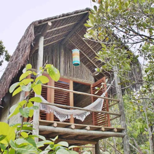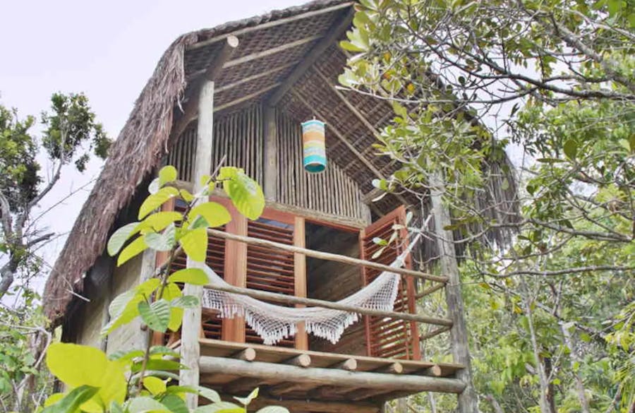 Em uma exótica e bela praia brasileira: durma em uma cabana na árvore
