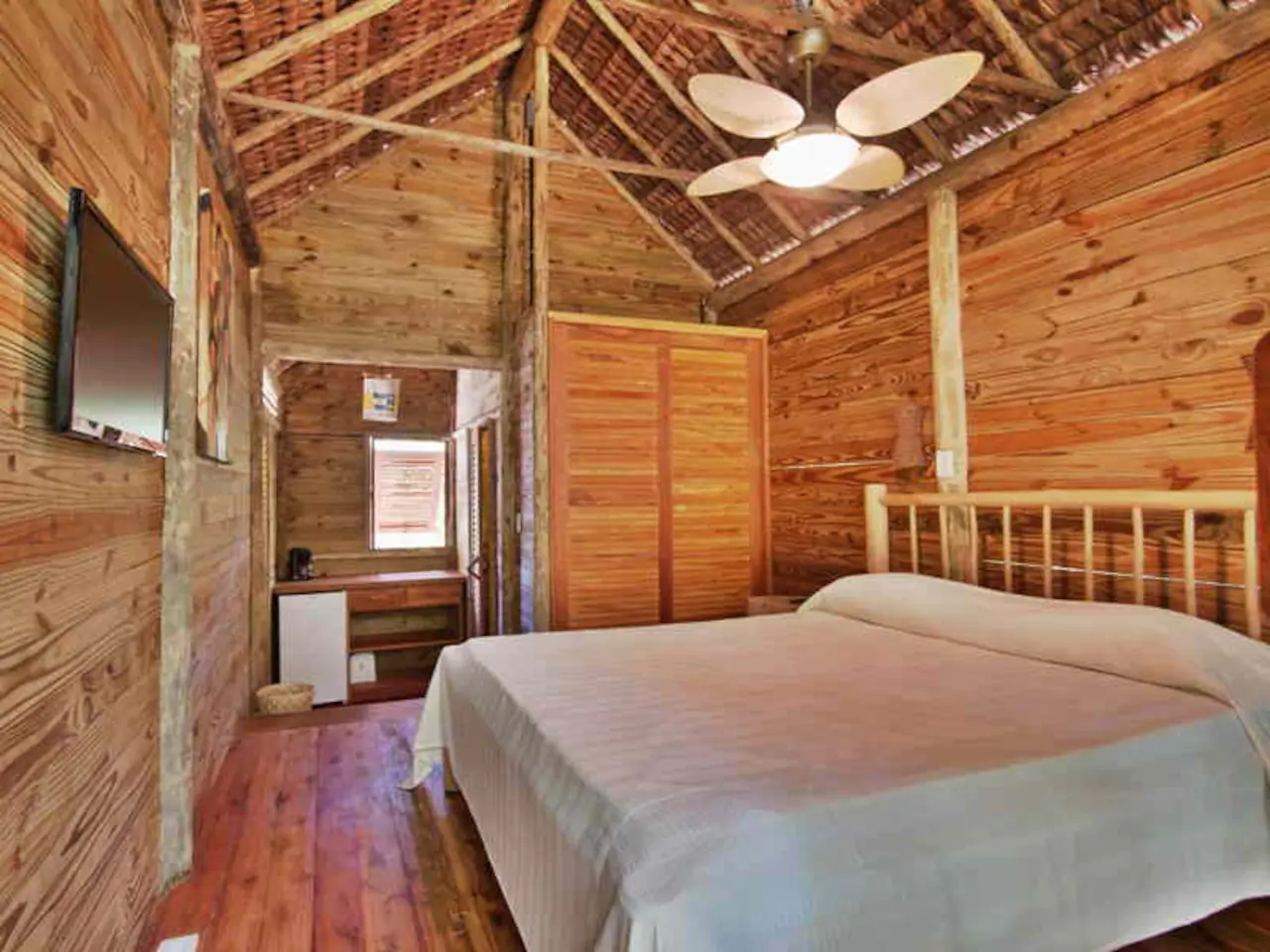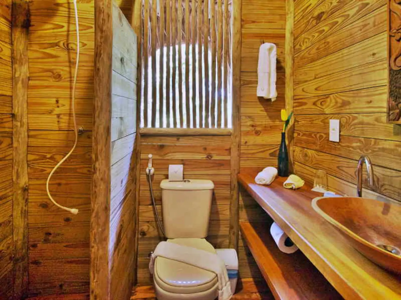 As casa na árvore é cercada naturalmente pela floresta, suspensa 4 metros acima do solo. Ela é construída exclusivamente com madeira: portas, janelas sem vidro, paredes, pisos, chuveiro, lavabo, exceto o sanitário. O telhado é coberto com piaçava. O espaço é bastante arejado e por estar em plena floresta tropical oferece aos hóspedes uma sensação maior de conforto e bem-estar.