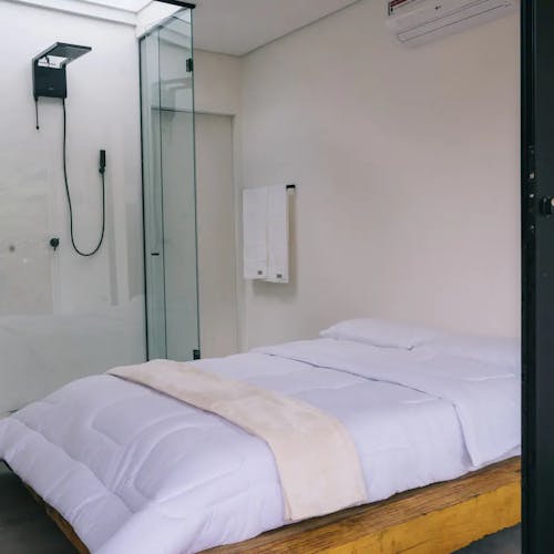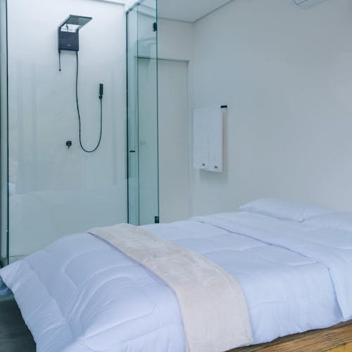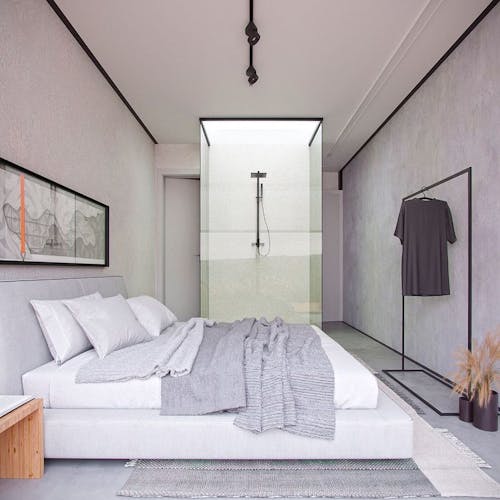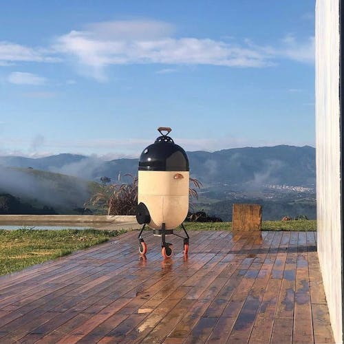 São duas suítes que acomodam até quatro pessoas, a casa tem formato de contêiner e possui poltrona e pias assinadas por Rafael e outros itens de marcas renomadas como Wentz, Prototype, Noori e Zissou. Fora da casa conceitual, instalações de arte, arquitetura e mobiliários, além da própria natureza, estão juntos nessa experiência.