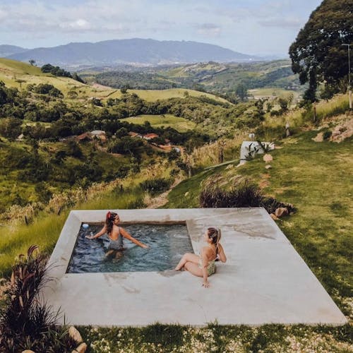 Ainda tem por lá ducha ao ar livre, churrasqueira e piscina pra curtir a paisagem!