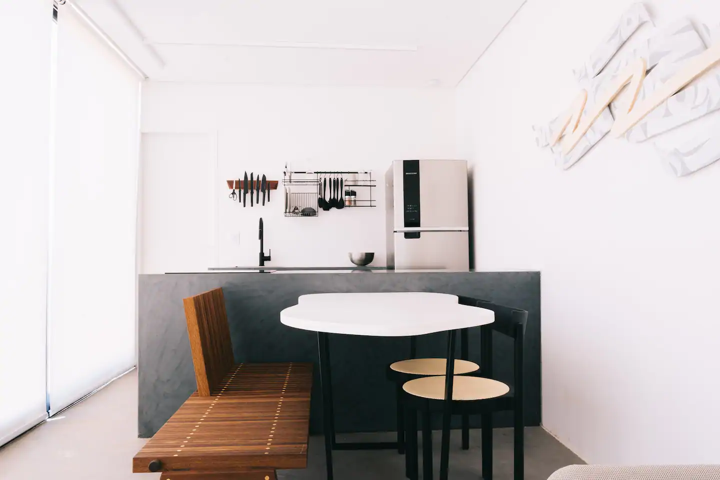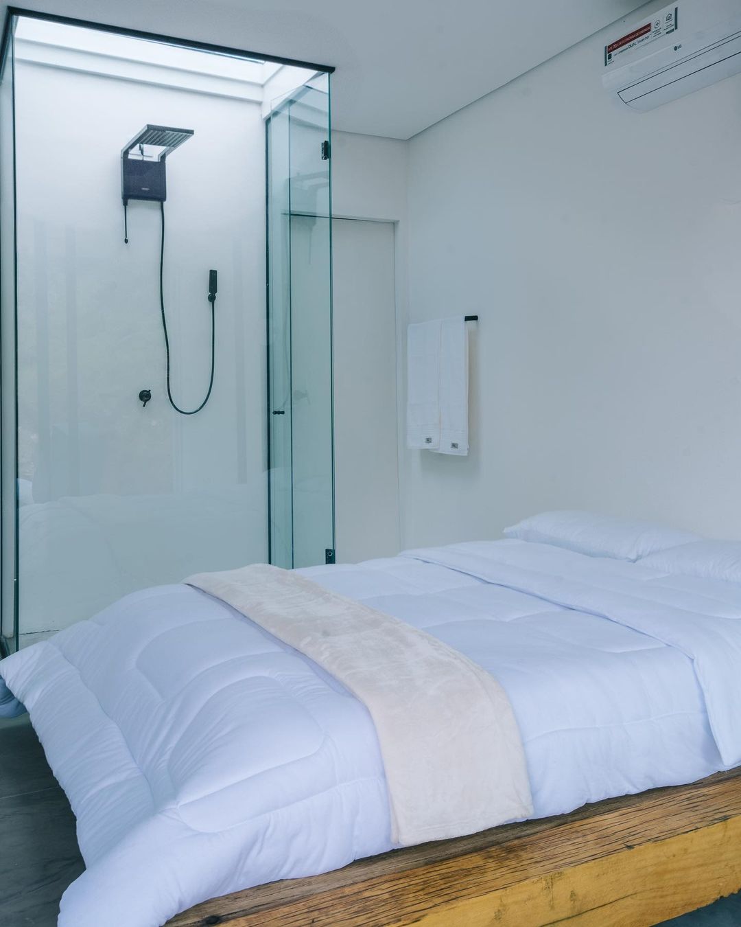 São duas suítes que acomodam até quatro pessoas, a casa tem formato de contêiner e possui poltrona e pias assinadas por Rafael e outros itens de marcas renomadas como Wentz, Prototype, Noori e Zissou. Fora da casa conceitual, instalações de arte, arquitetura e mobiliários, além da própria natureza, estão juntos nessa experiência.