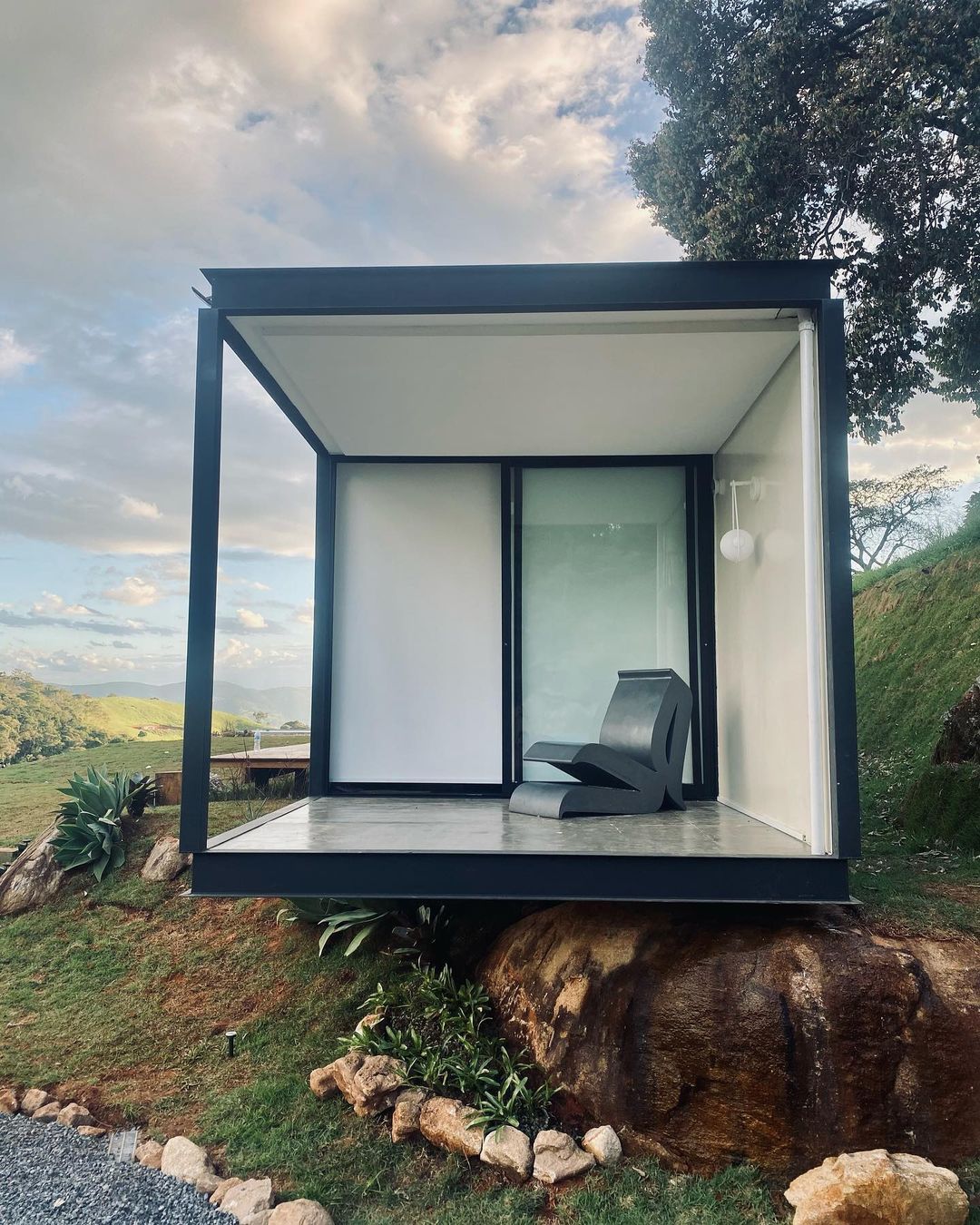 São 10.000 metros quadrados em um terreno localizado em Extrema - Minas Gerais, cercado de verde, obras de arte, muita natureza, design e arquitetura. Diversas obras de arte se encontram nesse novo parque artístico a céu aberto - lembrando o estilo e proposta de Inhotim - com a diferença que aqui, os visitantes não apenas contemplam a arte e vão embora: eles se hospedam dentro dela!