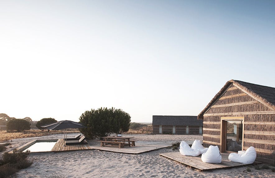 As Casas na Areia tem uma pequena piscina de frente para belos campos de arroz. Estão localizadas em Comporta, a uma hora de Lisboa. A região é conhecida pelas praias de areia branca, ótimos vinhos, peixes frescos e pelas plantações de arroz.