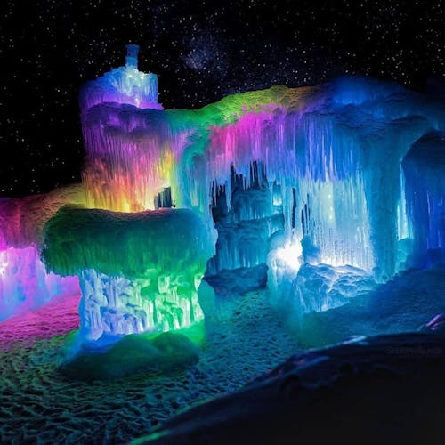 Ice Castles é uma atração premiada construída usando centenas de milhares de pingentes de gelo colocados à mão por artistas de gelo profissionais. Os castelos incluem esculturas iluminadas por LED, tronos congelados, túneis esculpidos, escorregadores, fontes de água, esculturas e atrações com fogo e muito mais. Durante o dia o percurso se mantém branco. À noite as luzes coloridas dão o tom colorido. Em New Hampshire, uma floresta ao lado da atração faz o passeio continuar por caminhos na "floresta encantada", repleto de luzinhas coloridas e adornos pendurados nas árvores.
