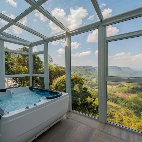 Localização privilegiada: dentro de um condomínio particular no centro de Gramado, com muita privacidade, exclusividade e vista para o deslumbrante Vale do Quilombo. São apenas 19 suítes, sendo 11 no Castelo e 8 no Mountain, reservadas aqueles que desejam desfrutar serviços diferenciados e totalmente personalizados em ambientes elegantes, intimistas e impecavelmente decorados com elementos clássicos e contemporâneos. Dos maravilhosos lustres tchecos à suave e exclusiva fragrância no ar, tudo foi pensado e criado sob medida para que cada experiência seja especial e inesquecível.