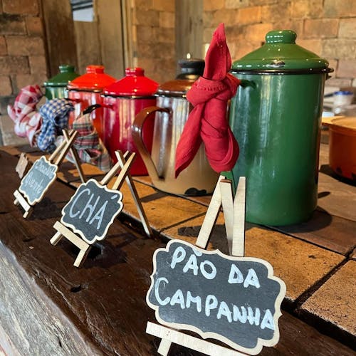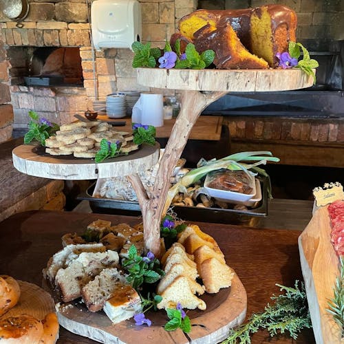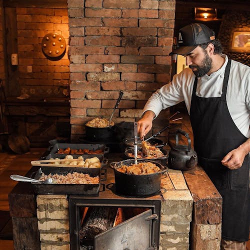 Alguns pratos especiais, são preparados no forno à lenha e devem ser solicitados com 24h de antecedência. Aos sábados, um grande churrasco ao ar livre é organizado e feito no próprio fogo de chão, em uma experiência totalmente sulista e na presença dos hóspedes.