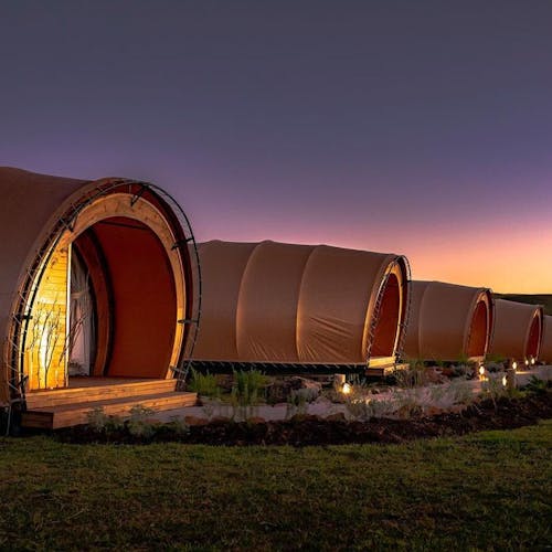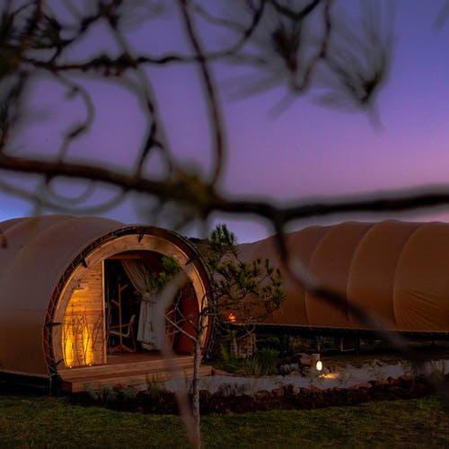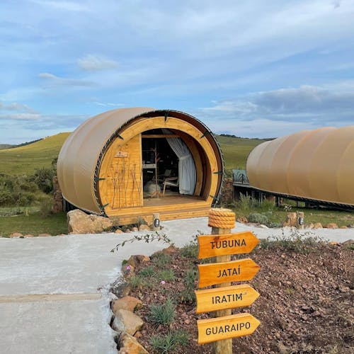 Inspirados nos casulos de abelhas, essas barracas foram projetadas para oferecer uma experiência única nos Campos de Cima da Serra. As barracas Casulo são um conceito inédito por aqui. Possuem design arrojado, feitas em lona e madeira, mesclando linhas contemporâneas com detalhes rústicos em um projeto totalmente integrado à natureza com vista privilegiada para os Campos.