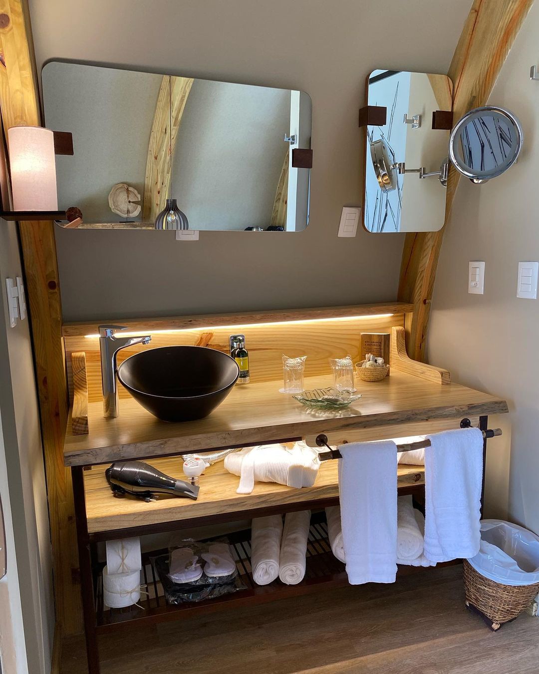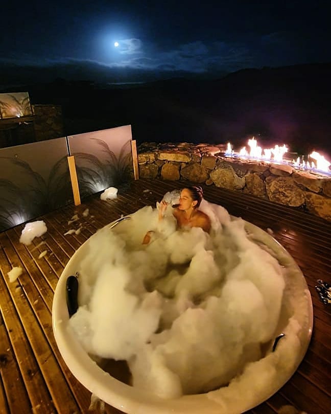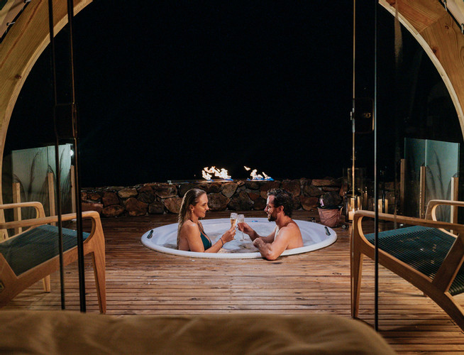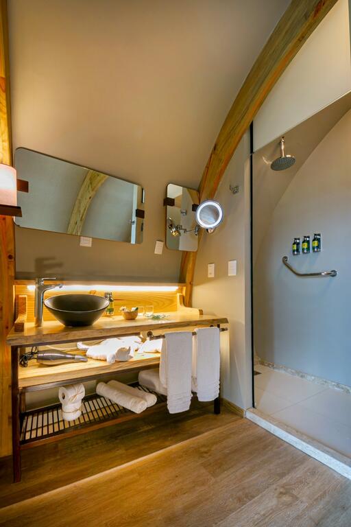 Lençóis térmicos, café da manhã incluso e banheiro privativo com itens de banho L'Occitane, proporcionam comodidade e conforto durante a hospedagem - o banheiro é dentro da própria cabana, diferente de algumas hospedagens no estilo glamping, onde às vezes o banheiro é externo. Há um deck privativo com hidromassagem, fogueira e vista para o campo.
