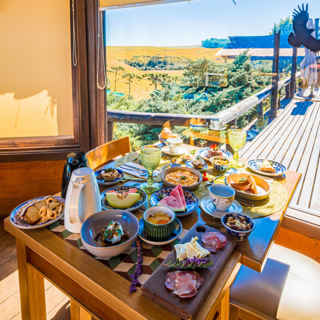 Alguns pratos especiais, são preparados no forno à lenha e devem ser solicitados com 24h de antecedência. Aos sábados, um grande churrasco ao ar livre é organizado e feito no próprio fogo de chão, em uma experiência totalmente sulista e na presença dos hóspedes.