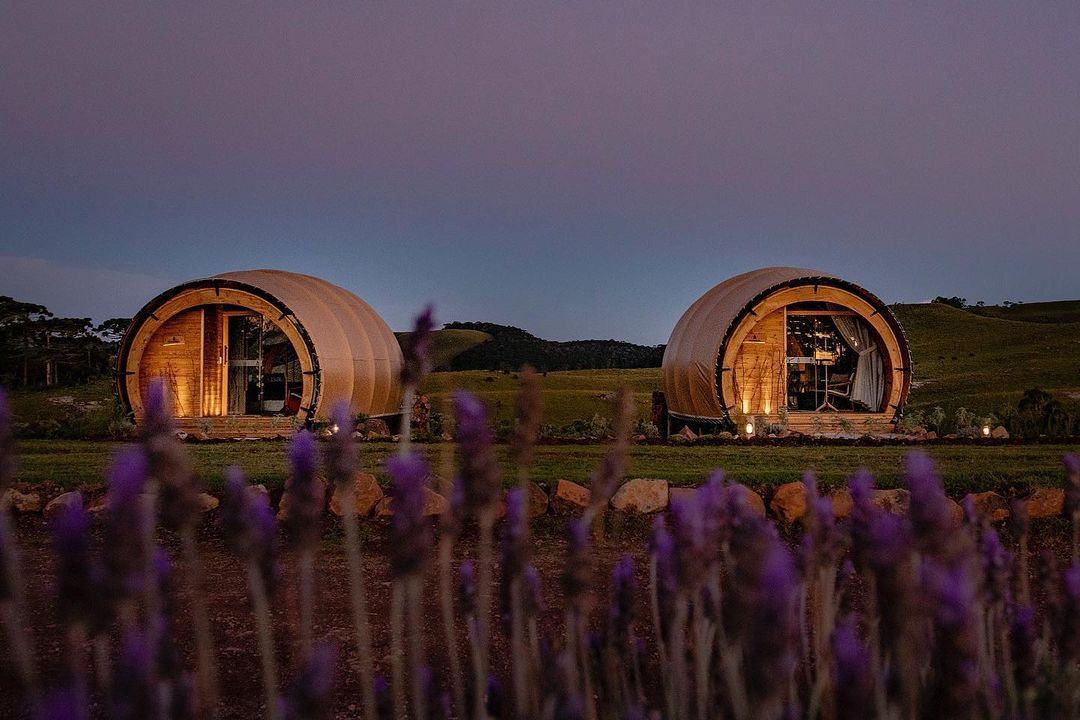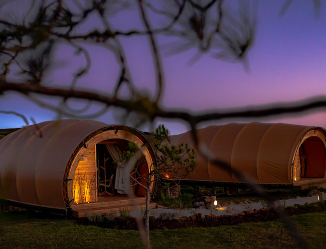 Inspirados nos casulos de abelhas, essas barracas foram projetadas para oferecer uma experiência única nos Campos de Cima da Serra. As barracas Casulo são um conceito inédito por aqui. Possuem design arrojado, feitas em lona e madeira, mesclando linhas contemporâneas com detalhes rústicos em um projeto totalmente integrado à natureza com vista privilegiada para os Campos.