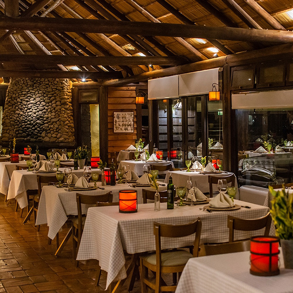 Culinária regional no restaurante Alma do hotel. Todas as opções do cardápio valorizam os ingredientes e produtos frescos da terra, do ar e da água, de acordo com cada estação. O menu é sazonal, feito diretamente no calor do fogo e à lenha na cozinha gourmet onde os hóspedes podem ver cada preparação ao vivo.